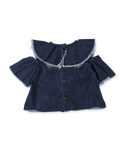 Work Denim Ruffled Blouse
