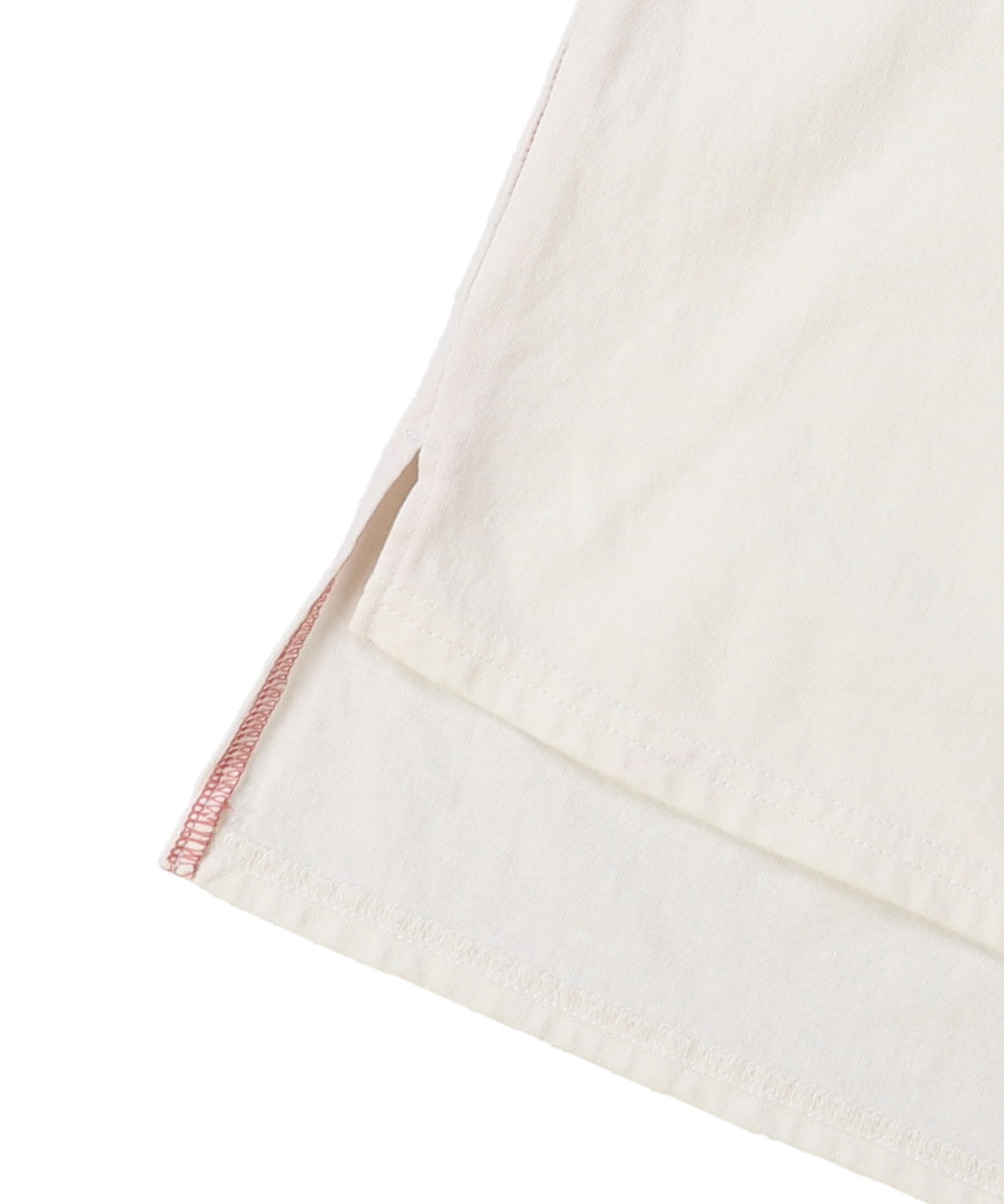 This sailor-taste t-shirt is designed in not too sweet but casual and relaxing. It is using cotton jersey material woven densely. This T-shirt is completed with long length but looks polished with the accented design around neckline.