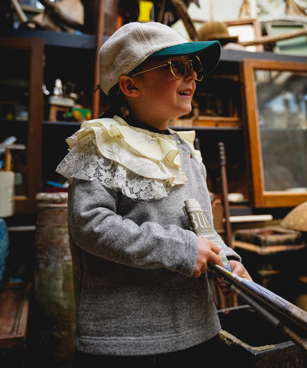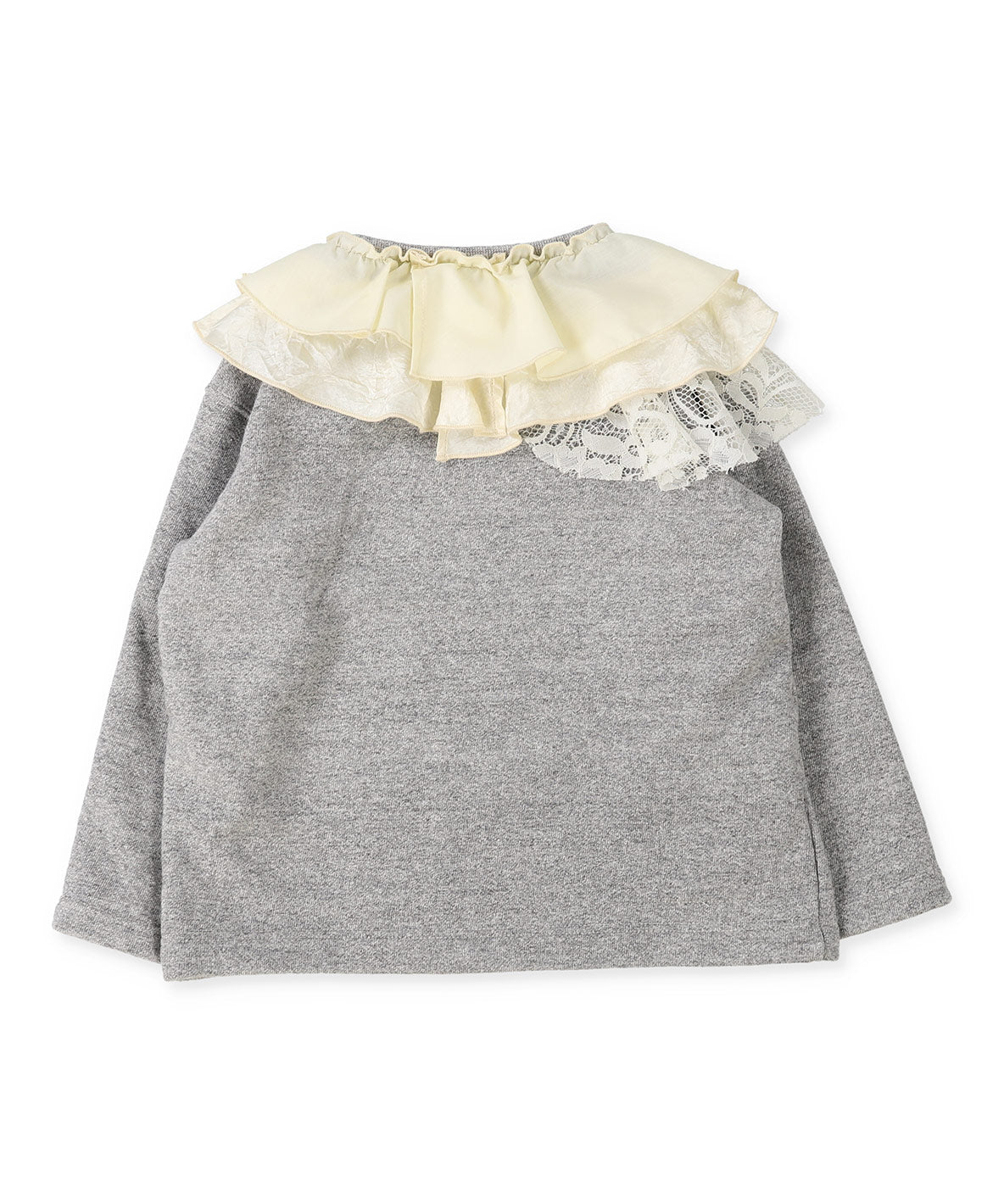 This crewneck sweatshirt is characterized with diagonal opening design and decoration with many kids of the buttons. Eye-catching collar by attaching many kinds of ruffles asymmetrically. This sweatshirt looks not too feminine by designing the cutting-finish edge for ruffles. Enjoy mixed design with authenticity and prettiness. Perfect sweatshirt for your daily outfit.