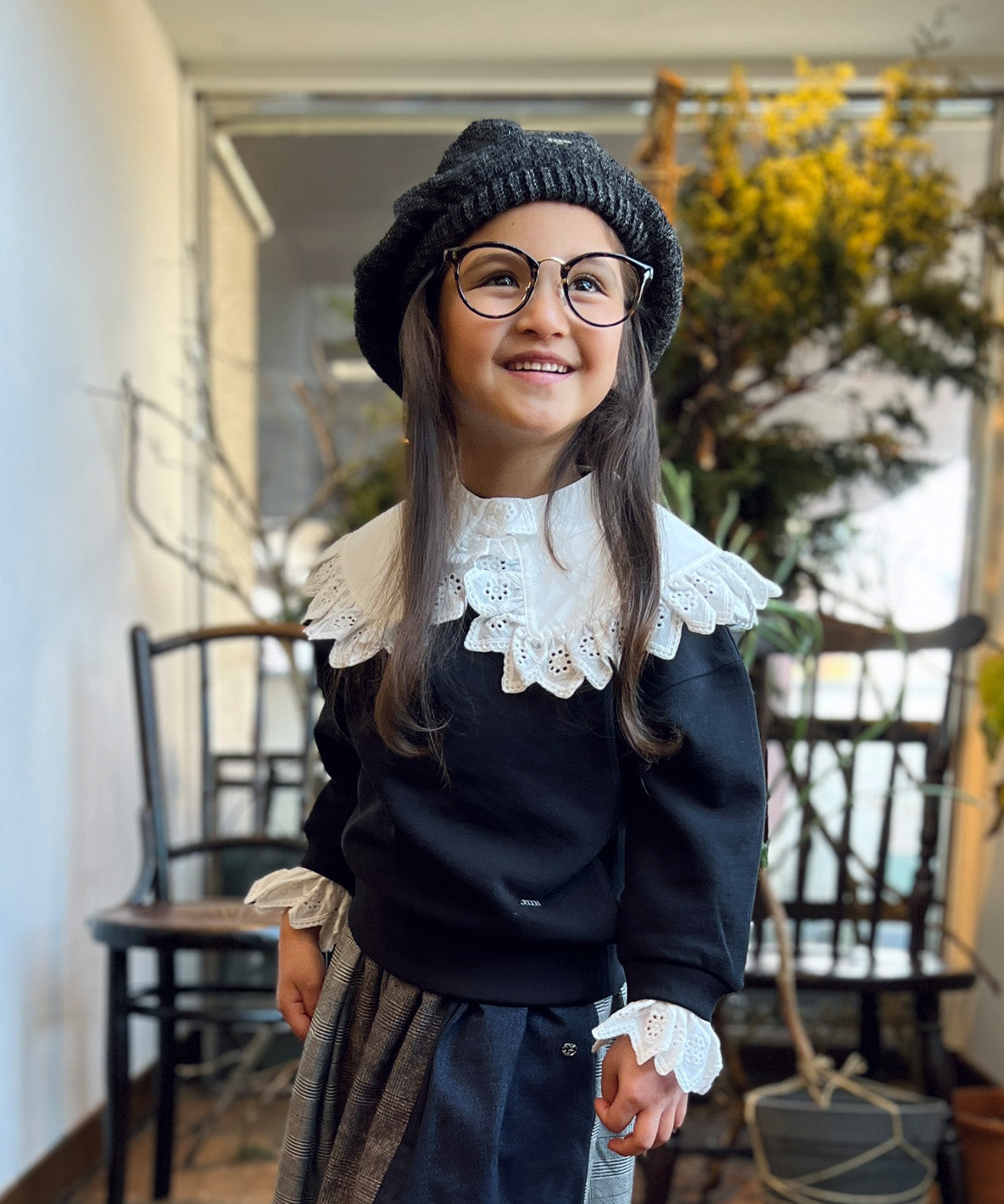 Smooth texture sweatshirt completed with the tough fabric. FITH original pile fabric. It is characterized by more beautiful, smooth and breathable pile with double yarn than the usual pile with single yarn. Woven in high density. It is easy to keep silhouette. It is completed with the shiny cotton like silk by mercerization. Strengthened fiber with less wrinkles. Compact sizing. Perfect for the layered outfit with cutwork lace on cuffs. You can also wear it as a simple and rounded neckline sweatshirt without detachable collar.