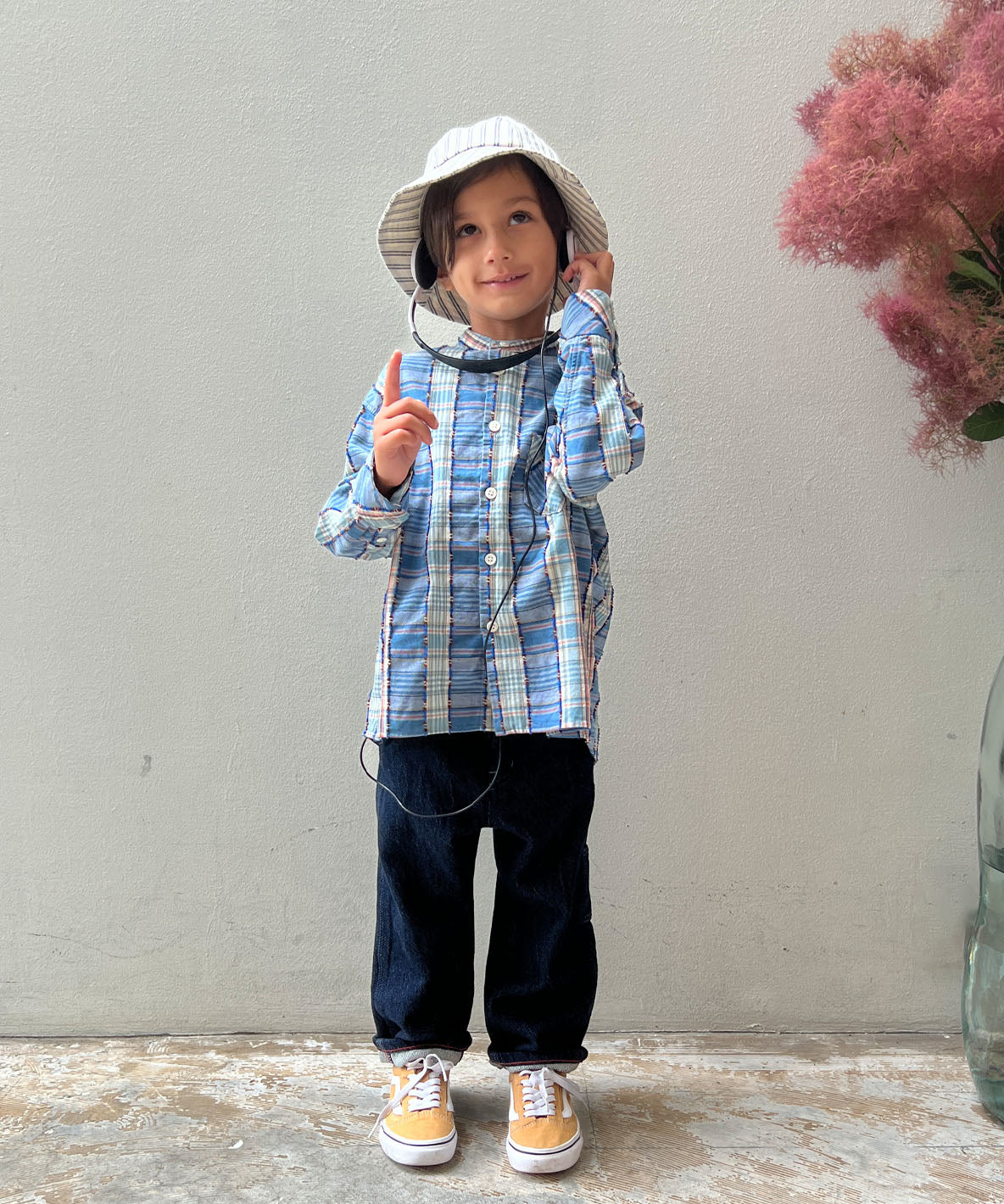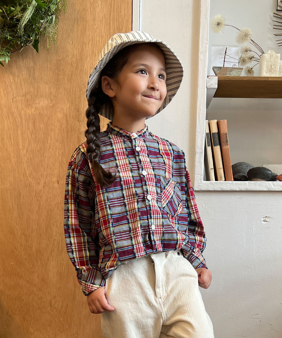 This patchwork cut jacquard shirt is designed like handicraft. Delicated with unique and tasteful fringes. This stand-up collar shirt is completed with semi-loose silhouette and loosely shoulder-dropping design.