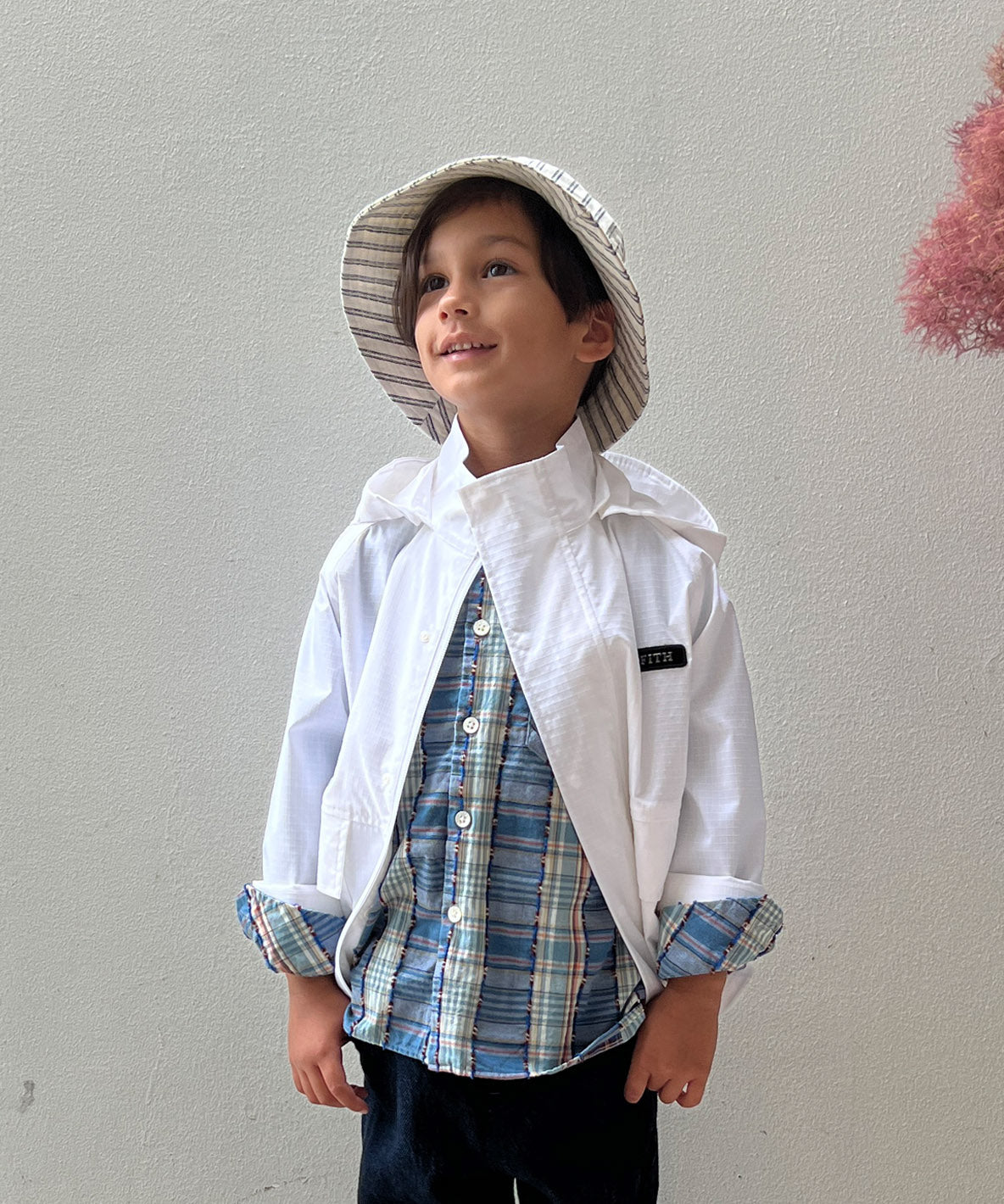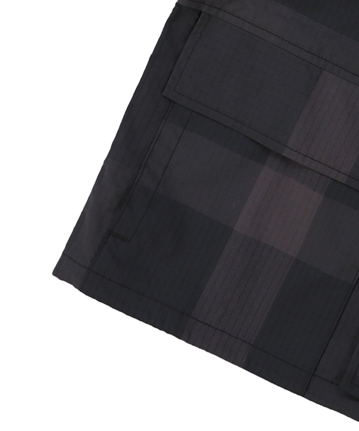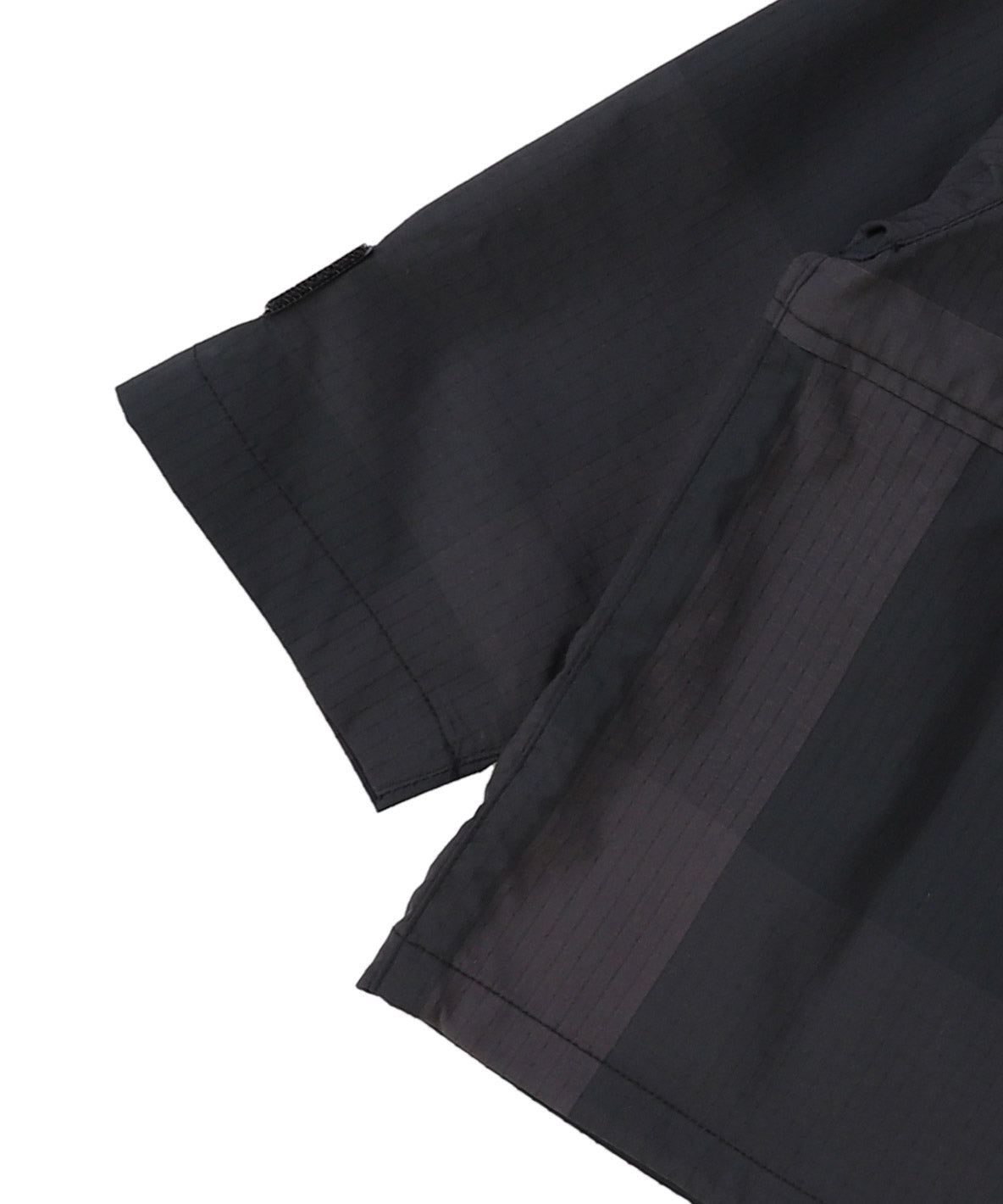 Mountain parka with a detachable hood. It is using yarn-dyed ripstopped material blending taslan nylon and Primeflex. Completed in smooth texture with sophisticated shine. Both functional and fashionable parka.