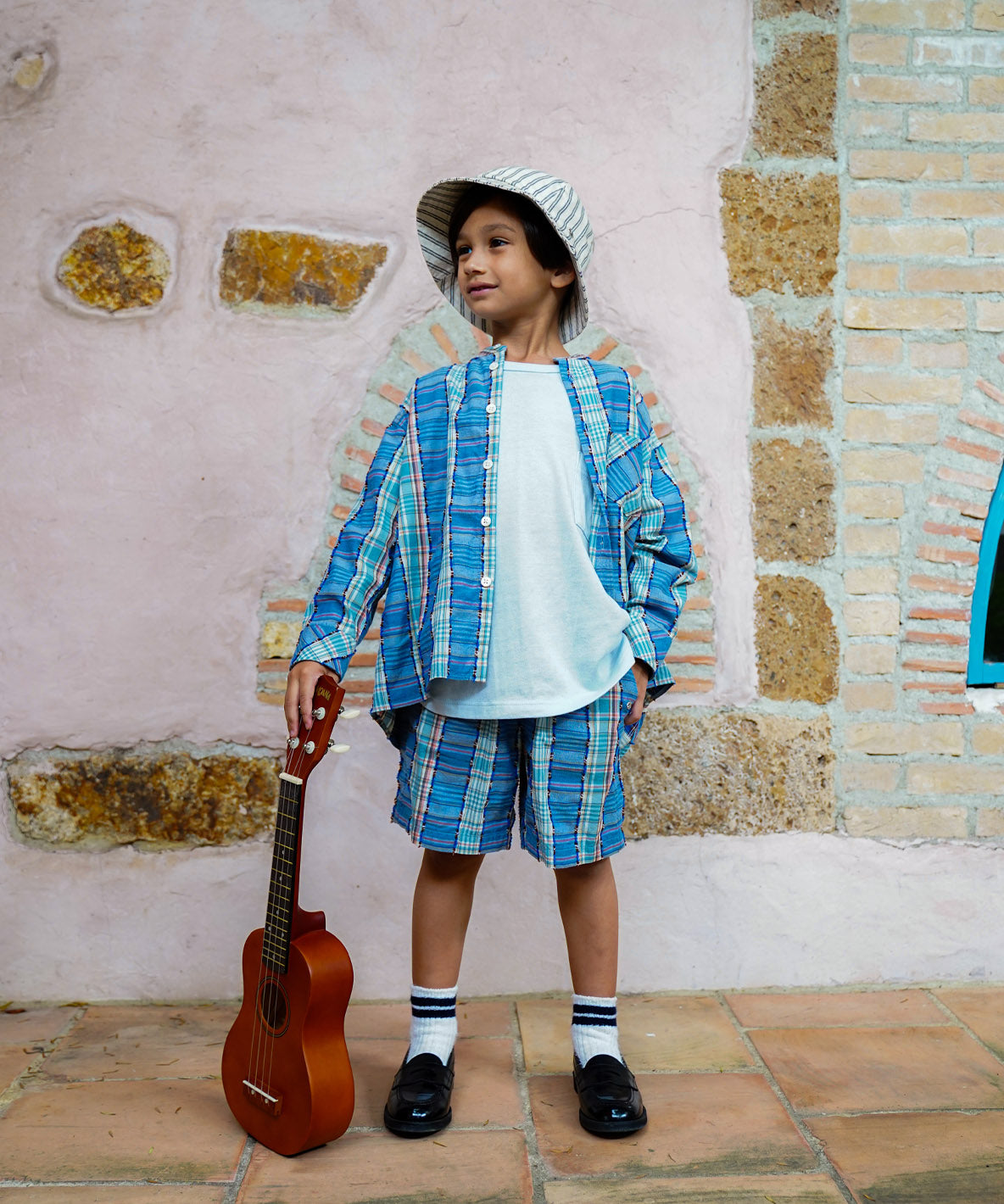 Patchwork-like cut jacquard pants in short length. They are using different plaid pattern alternately. Look like handicraft with tasteful fringes. They go well with a simple T-shirt.