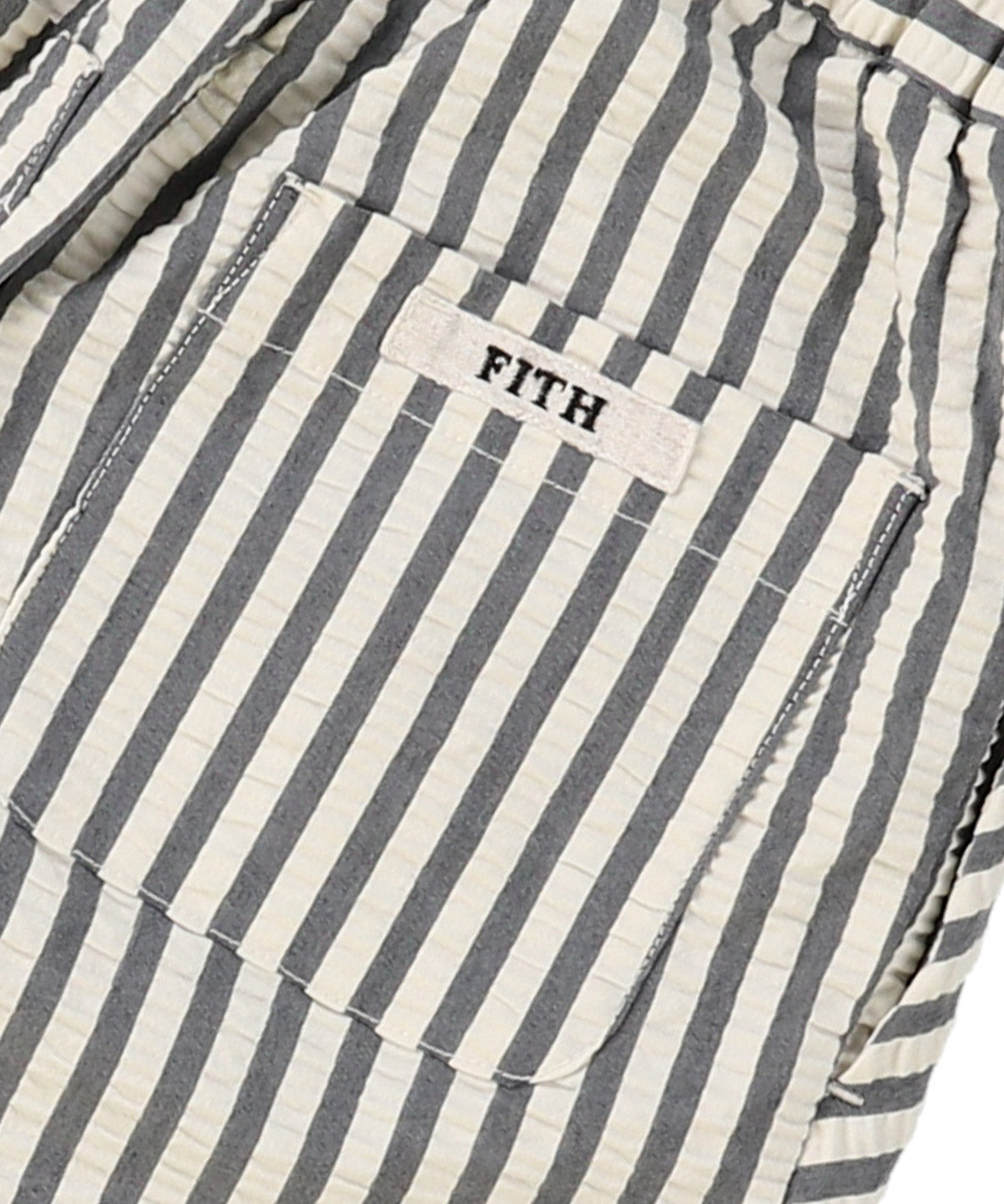 Using sheersucker fabric woven by blending COOLMAX. This fabric features great thickness after weaving with slightly thicker yarns than the normal seersucker fabric. "COOLMAX®" shows greater absorption and desorption of sweats than cotton fabric. They always keep comfortable moisture and cool temperature. This fabric is also characterized with quickly-dry, light and getting less-wrinkles. Perfect pants for summer. They are easy to wear with the original buckle. Accented design with luxurious FITH logo on the buckle. Wrapped and asymmetry design.