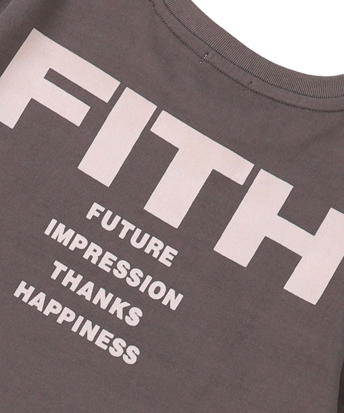 Long length dress in semi-loose silhouette. Using FITH original cotton jersey woven with no. 32 double yarns. Double yarns are twisted yarns of single yarn. It features less fluffing, smooth texture and tough material by using double yarns. It looks shiny cotton like silk by mercerization. Mercerization can strengthen fiber and make fabric less wrinkles. It may keep shape after repeated laundry by using premium yarn. Printing cooperate philosophy on the back: Future, Impression, Thanks, Happiness.