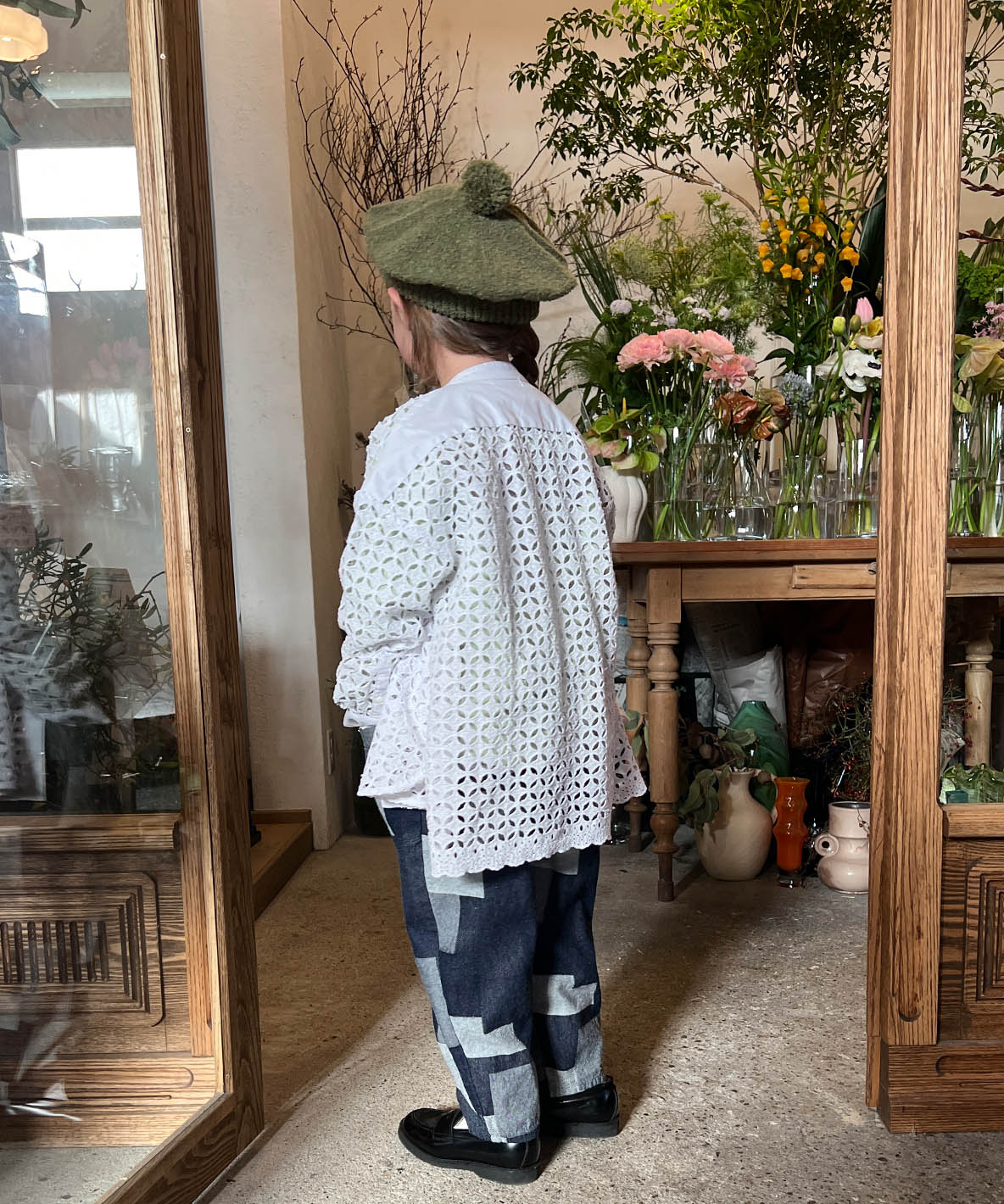 This blouse is characterized with gorgeous cutwork lace. Designed with eyelet embroidery on the cotton material. It looks sophisicated with pin-tuck design on the chest. Grab this blouse as the main item in your outfit.