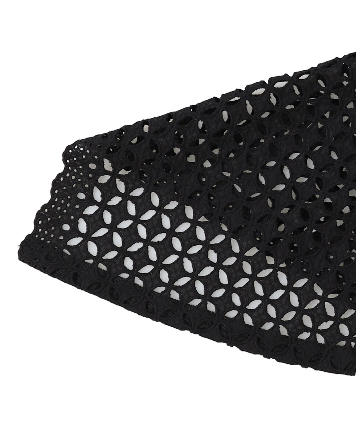 Completed with the cotton jersey woven by 40/2 yarns for the front body and sleeves. This material features well-voluminous, soft, airy and fluffy texture. Designed with scalloped lace and eyelet embroidery on cotton for the back body. Enjoy this unique texture completed with different materials.