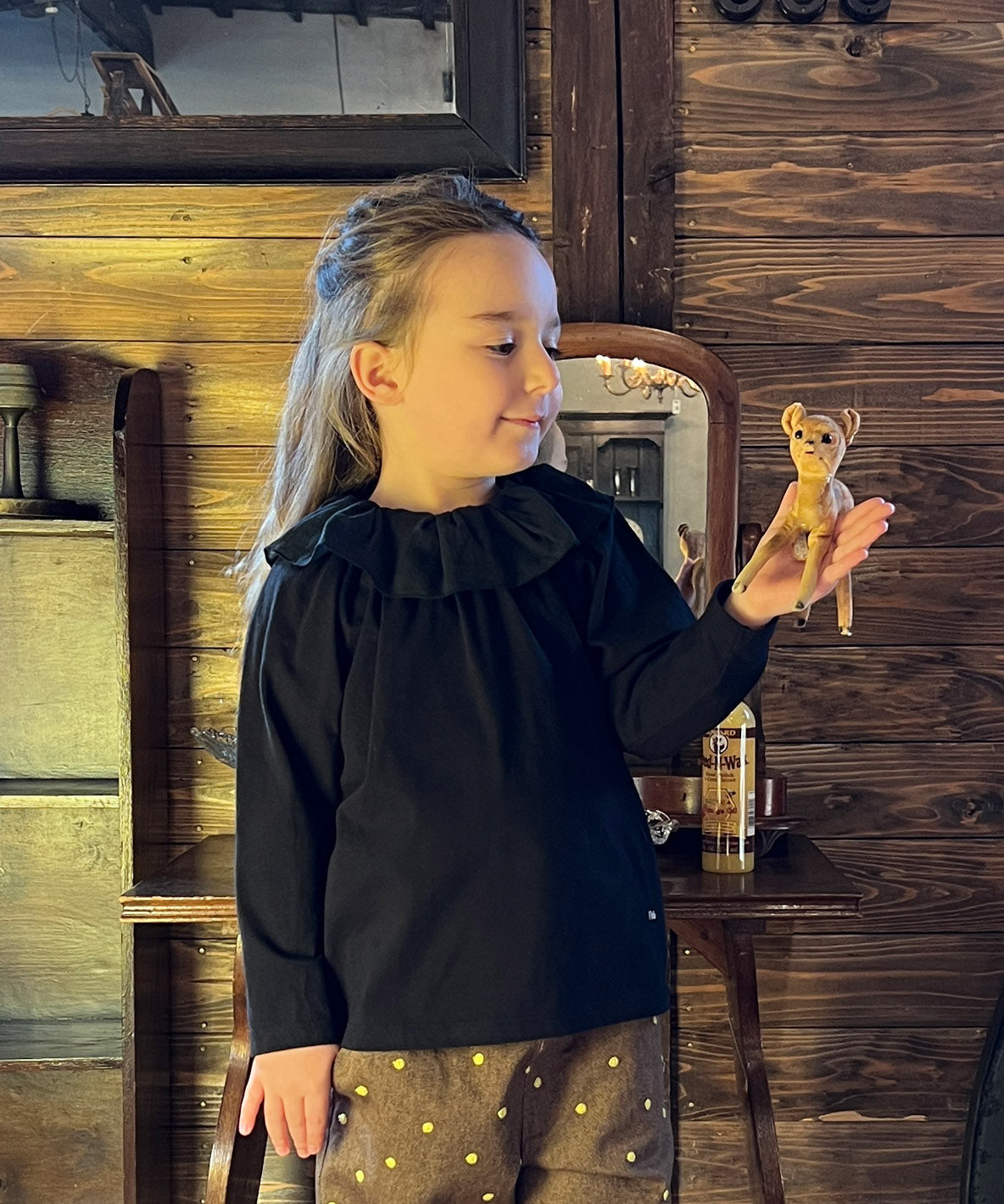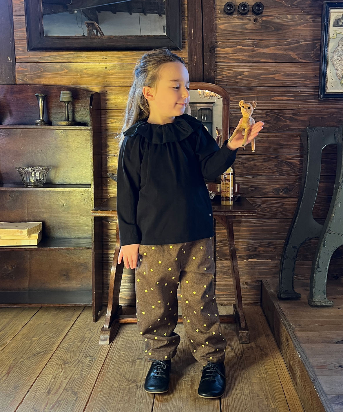 This knit wear is designed with compact silhouette. It is characterized with thin, smooth and supple texture by weaving in high gauge. The neckline is decorated with the airy chiffon frill. It is easy to wear with the pullover design. You can wear this T-shirt only by itself and also as an inner wear.