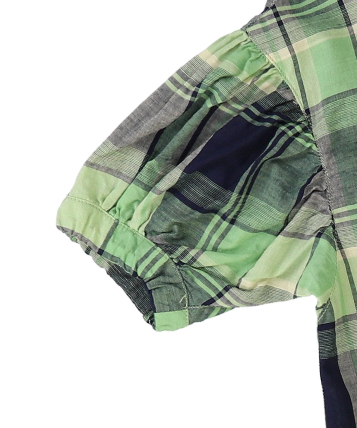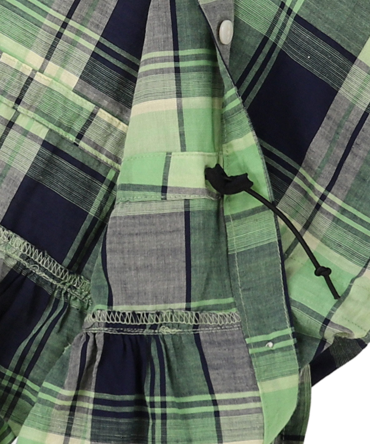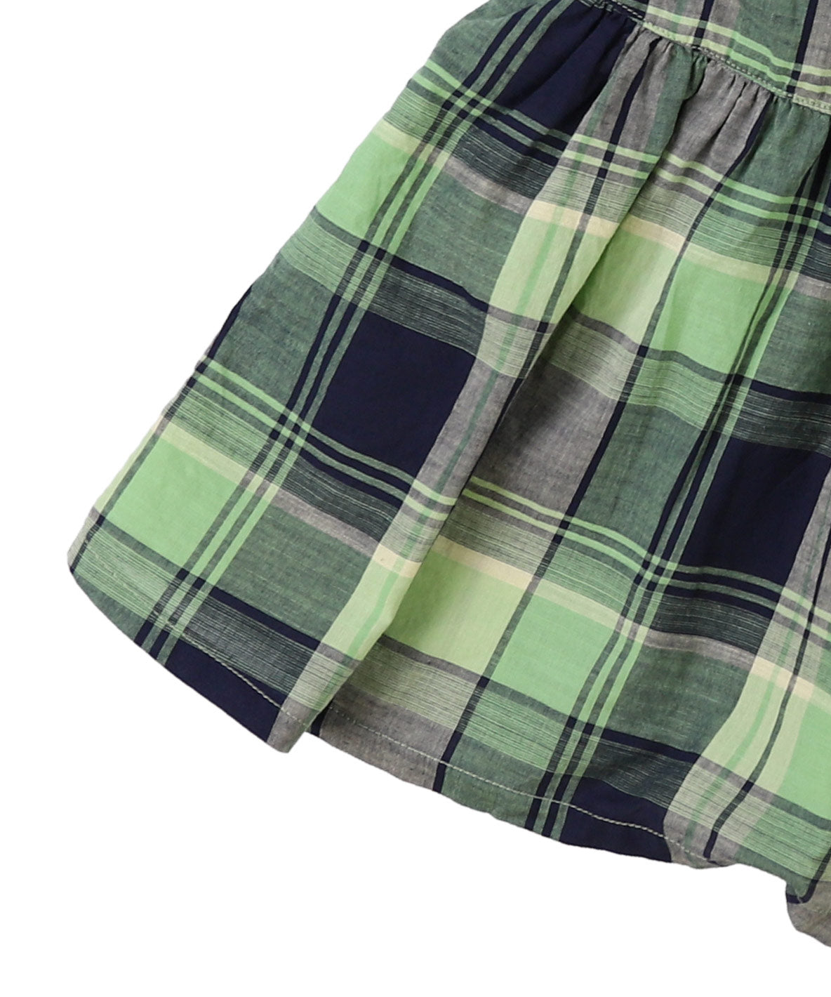 Using thin fabric with madras plaid pattern features uneven look by containing slub yarns as woof.