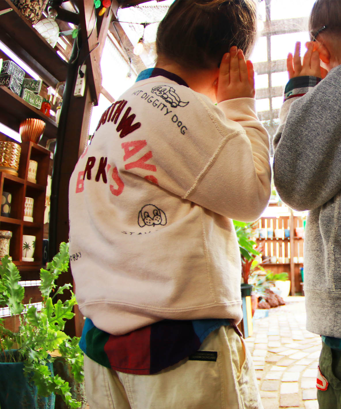 This sweatshirt is designed with the simple stencil "LIVE FOREVER" on the front. This message expresses the love for your family and dogs. It features cute handicraft-like design with embroideries and discolored letters on the back. This sweatshirt is designed with a message: living a heart-rich and pet-friendly life. It is inspired by DENIM DUNGAREE's theme and slogan: safety, joy with your loved ones and making your memories with your precious ones that last foerever.