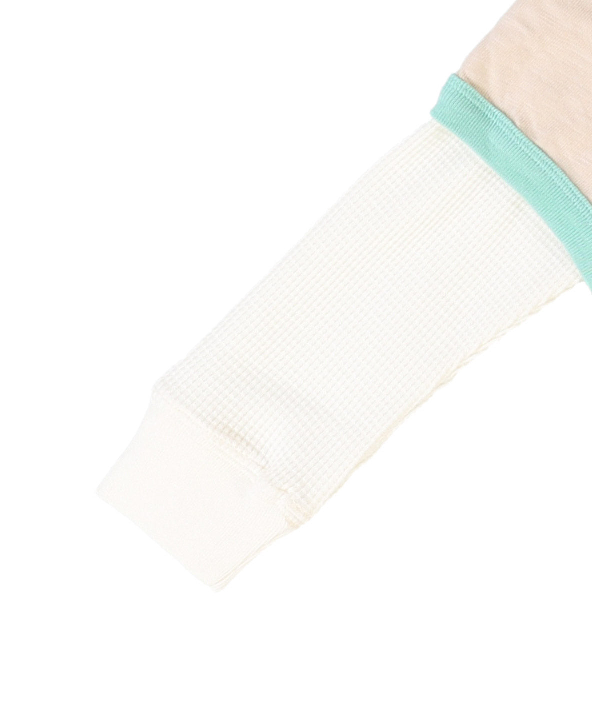 This tee looks like the layered design with the waffle fabric sleeves. It is characterized with the impactful design of a smiling dog at the center.