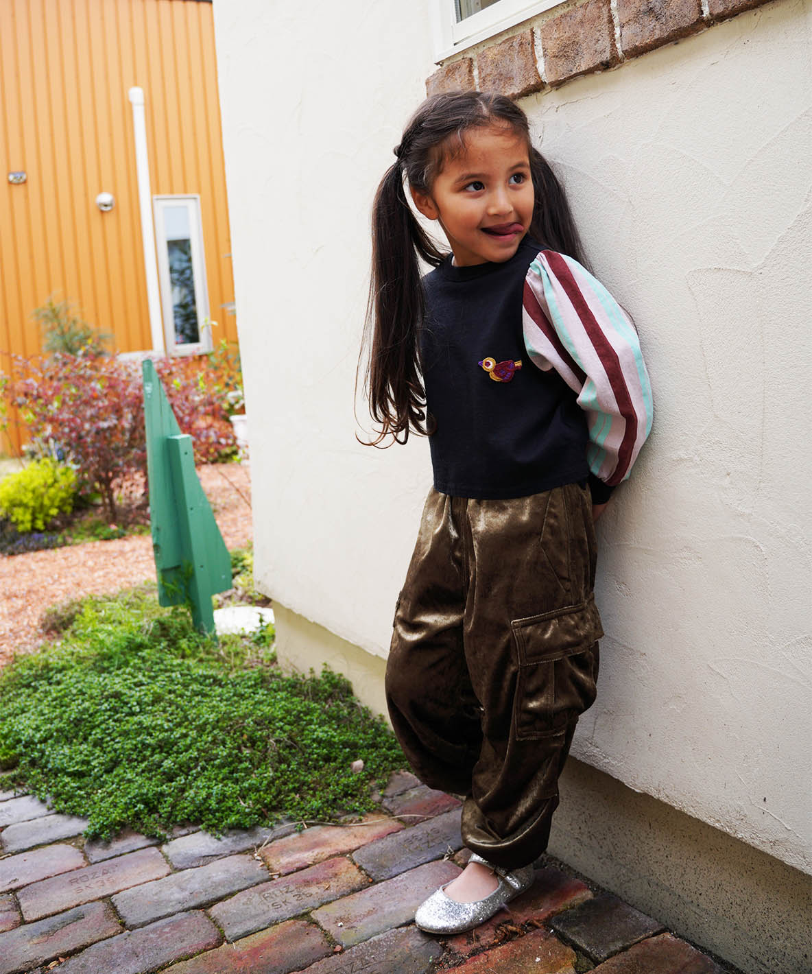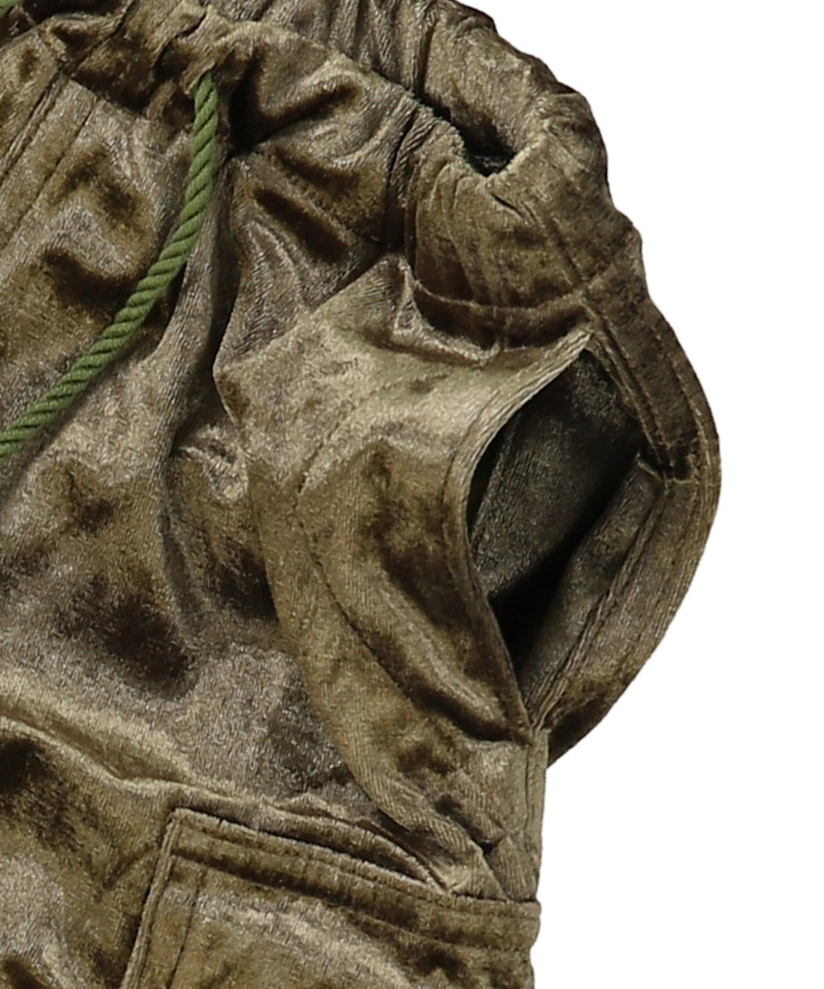 Completed with velour fabric to wear effortlessly like sweatpants. Designed as big sizing silhouette. Long length like hems covering over shoes. Recommended to choose your just-fitting size for adults. With a thin and elasticated liner to prevent velour yarns from falling off.