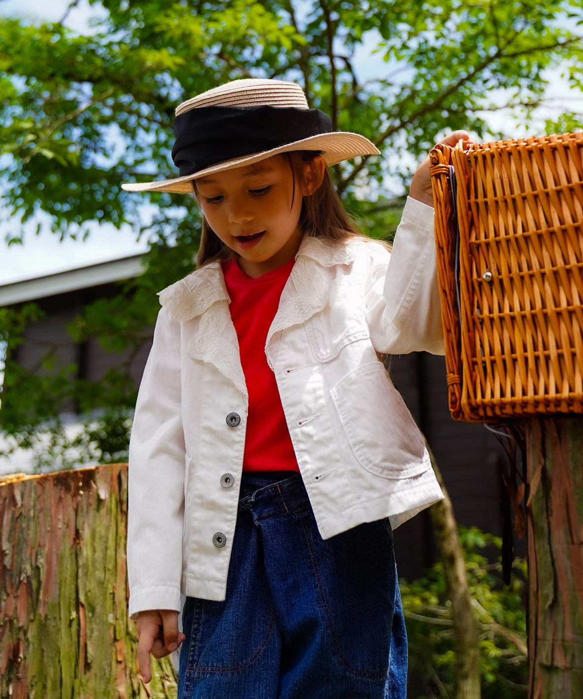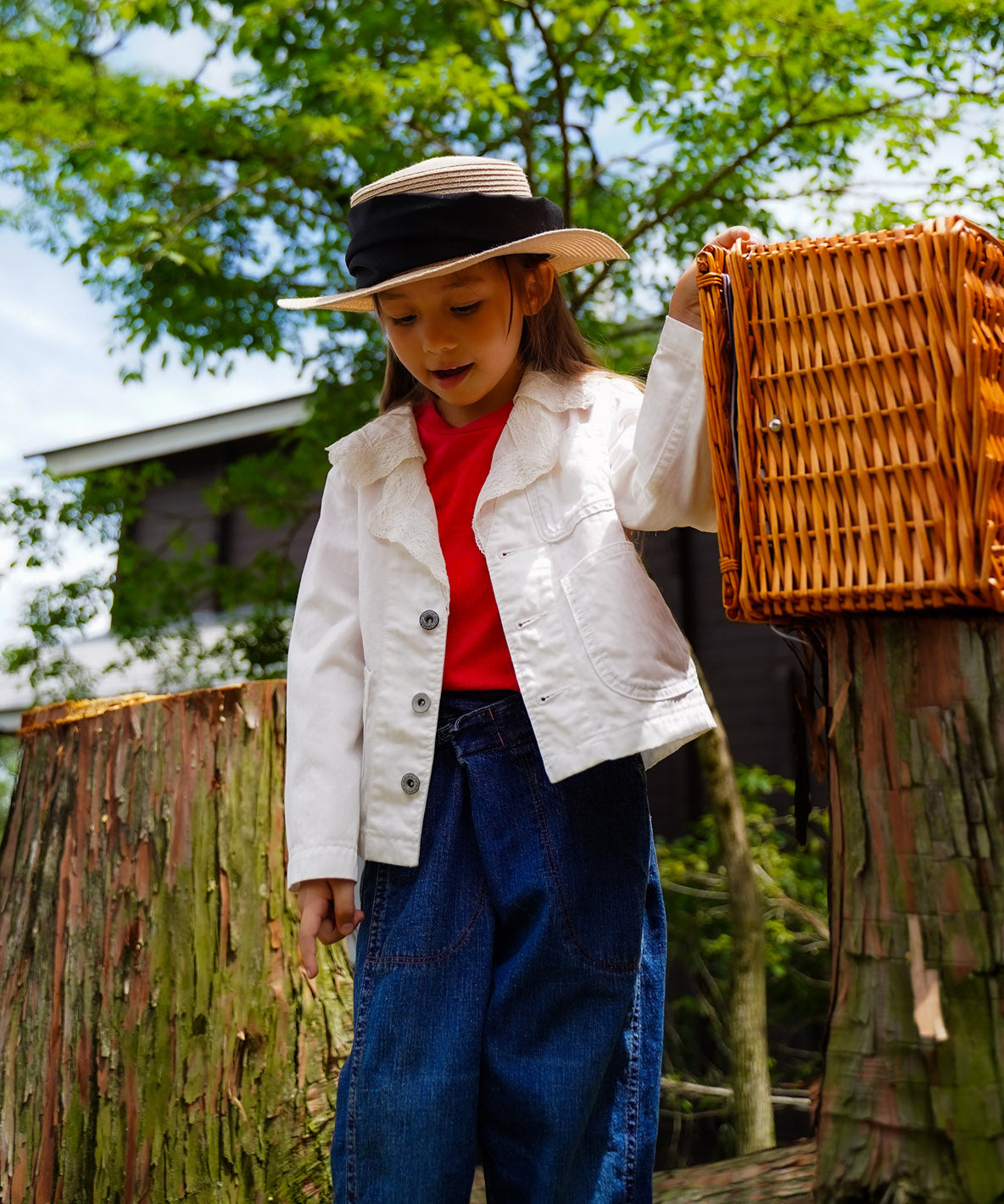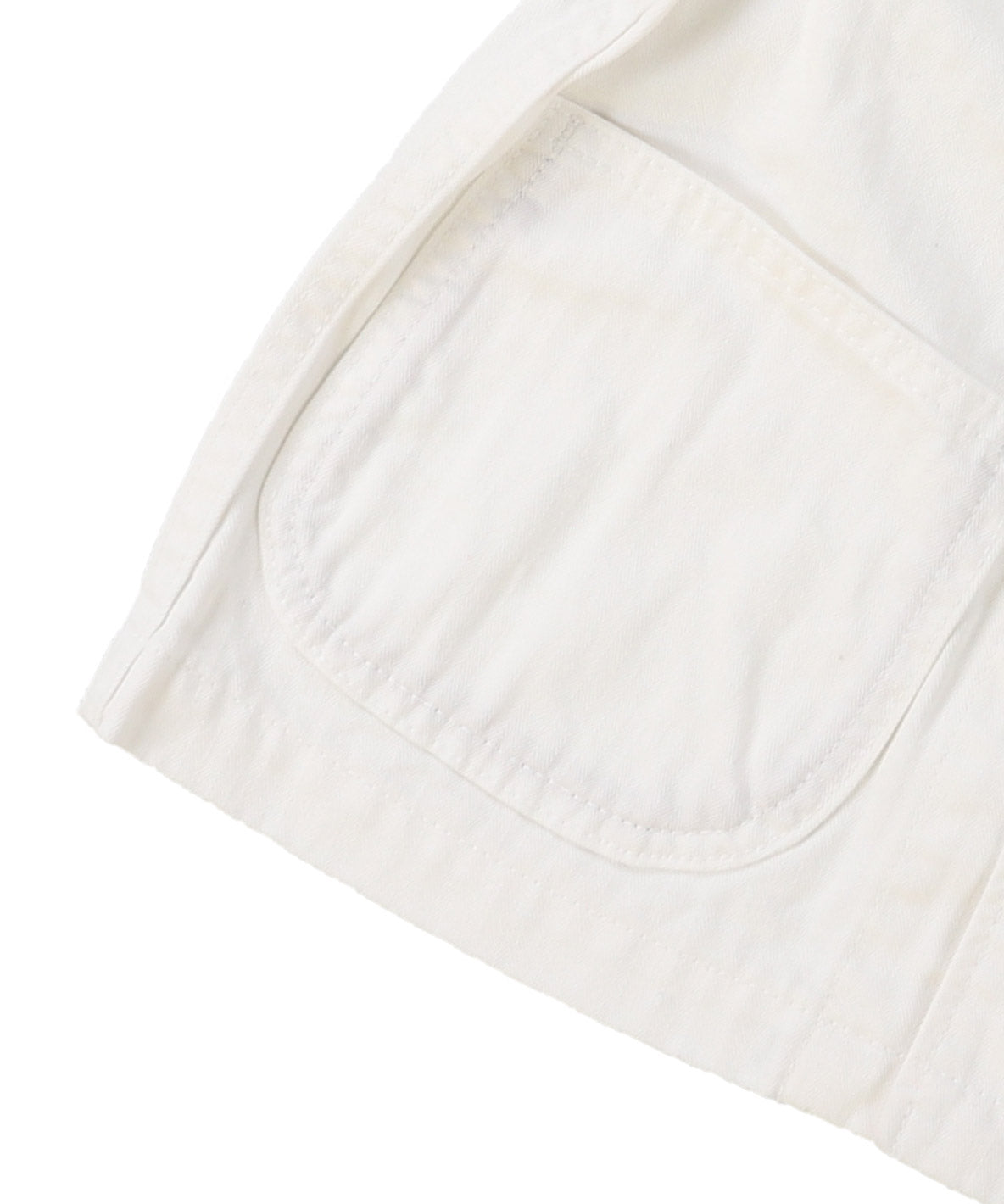 Docking jacket with herringbone fabric utility jacket and romantic sailor collar. Enjoy boyish styling with denim pants and shorts. Recommended to wear it when hanging out in your summer town.