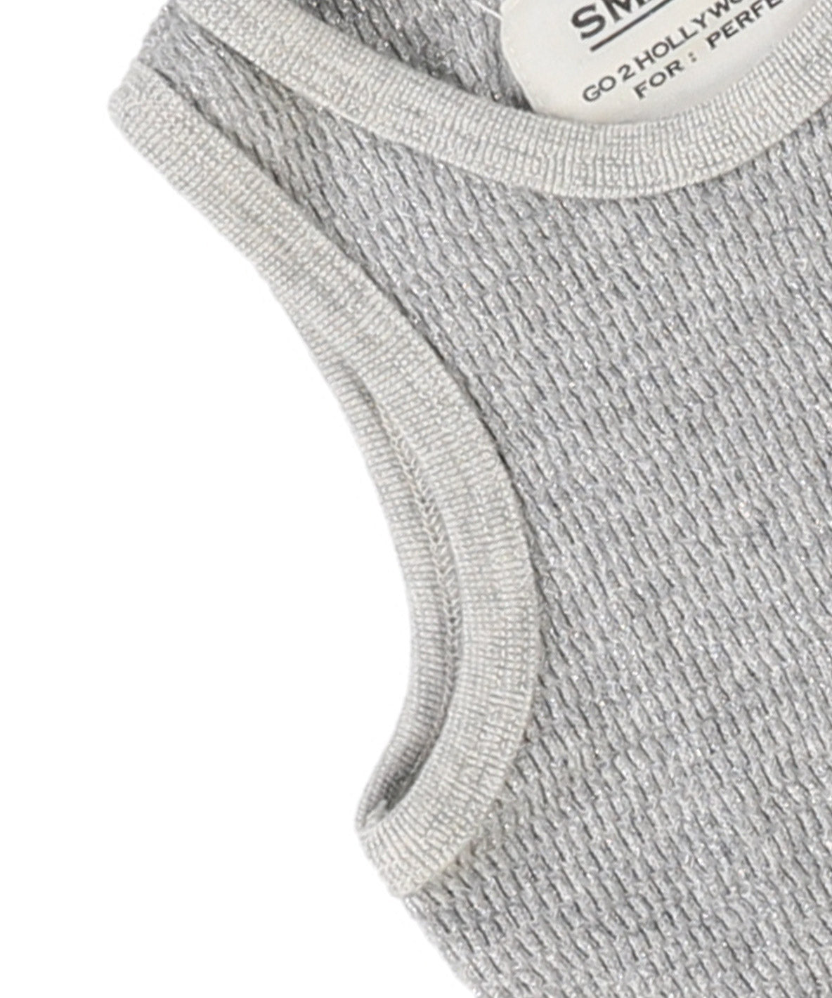 G2H's new basic glitter waffle fabric tanktop. Looks normal but unique. It is completed with unique silhouette neckline. It may not look like an inner wear. You can wear it by itself. Match well with any clothes. Looks cute only by wearing it under a shirt.