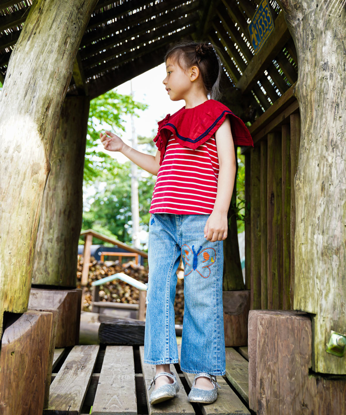 Completed with boot cut silhouette which was popular in the 70s. Nowadays, the theory is to wear thick pants with low rises and drag them. Look super cool by wearing these pants with low rises and drag these hems like skating boarders in the 70s!