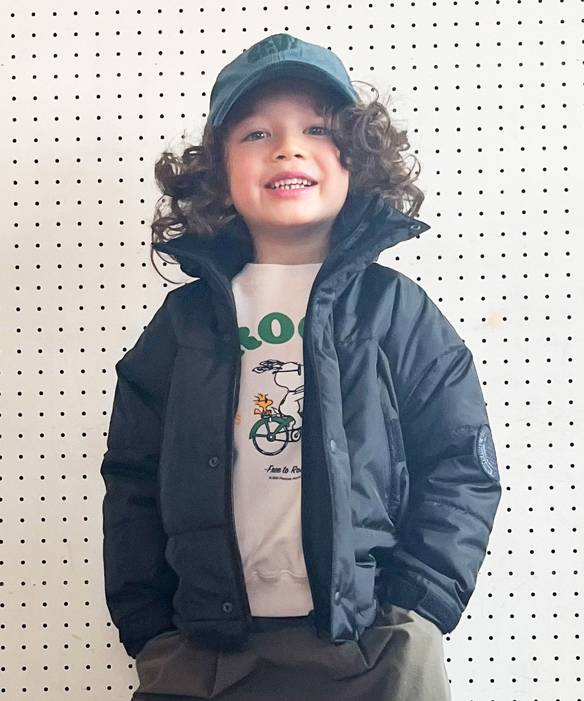 Tough fabric against tearing. Made in Japan. High density ripstopped fabric. It is designed as a simple jacket but with hamburger's patch on the left sleeve. With a strageable hood into the collar. This material features lightness and warmness. Perfect for cold protection. Machine washable.