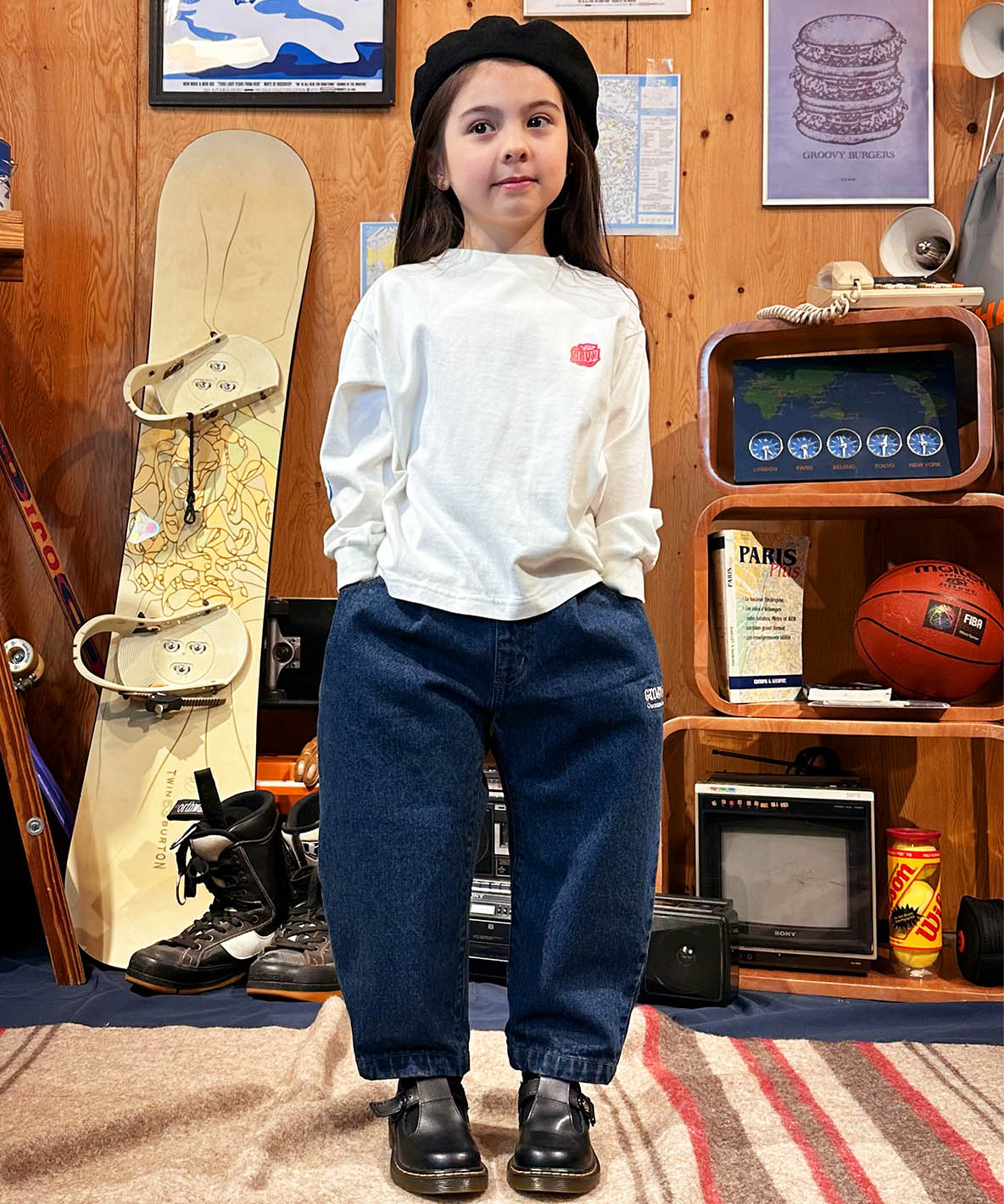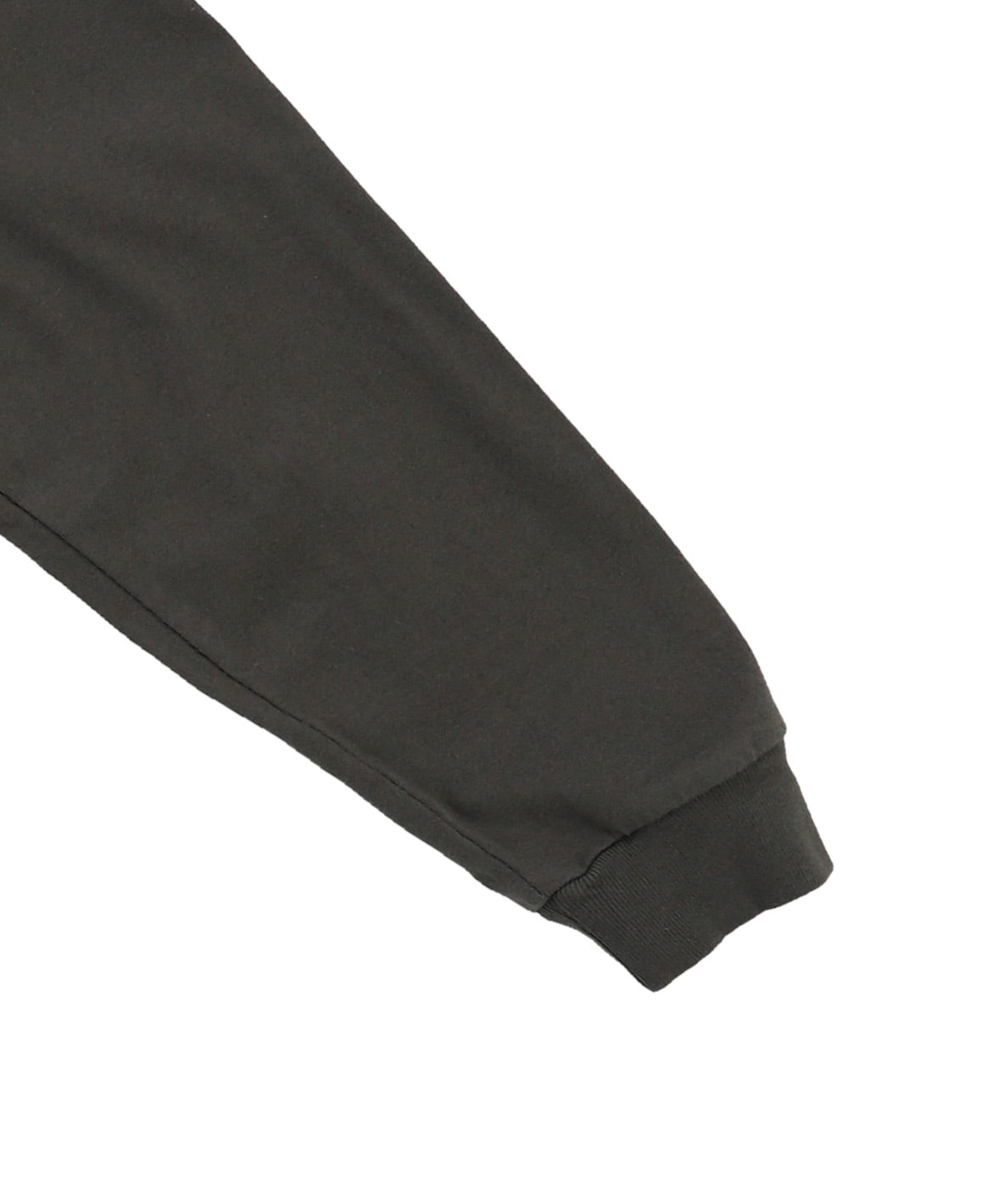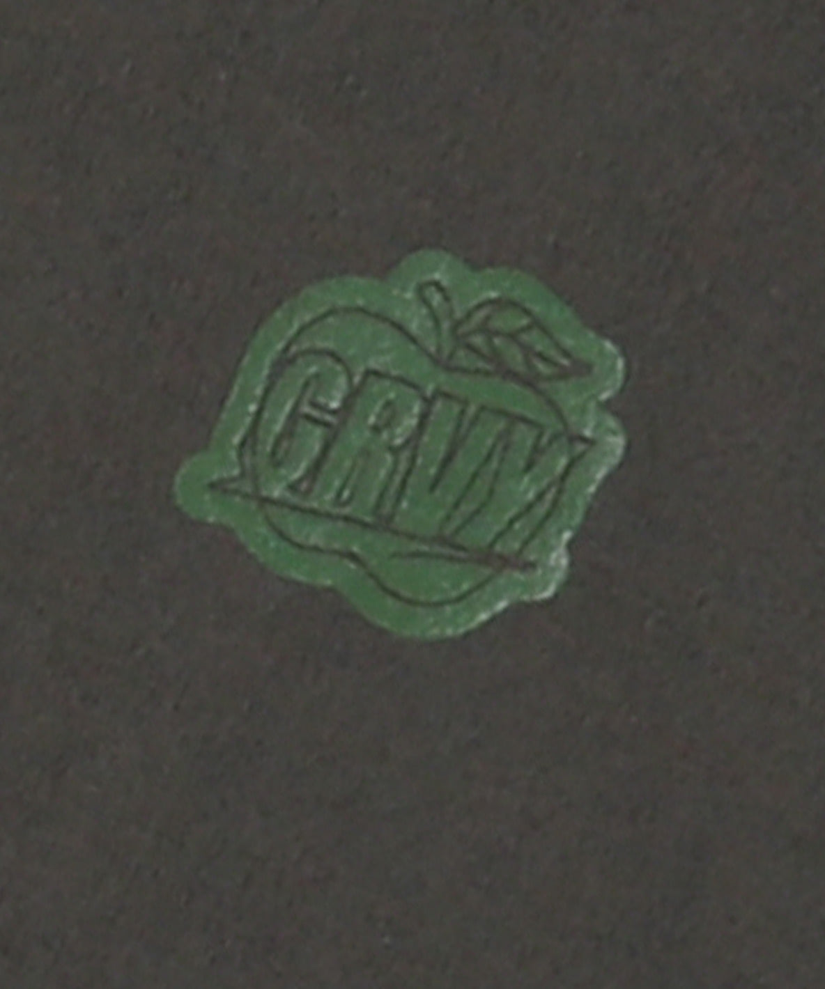Simple long sleeve T-shirt. Using GROOVY's standard cotton jersey material. It is characterized with shiny rubber print of an apple on the left chest. Recommended for the layered outfit with giving glimpse of the logo on the right sleeve.