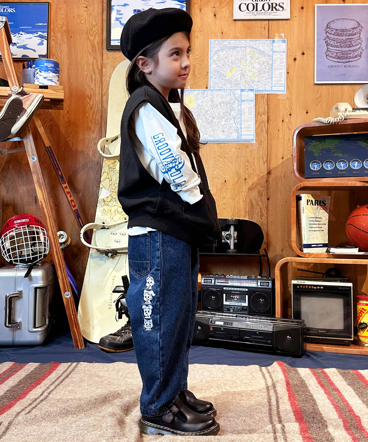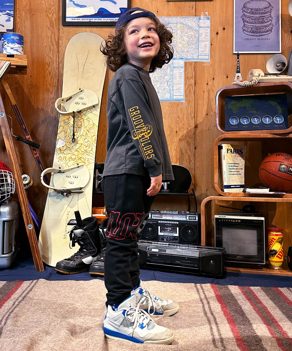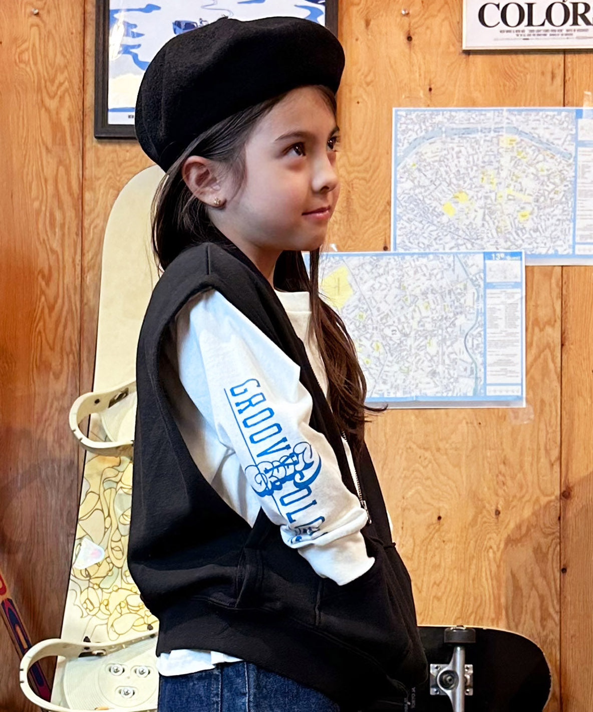 Simple long sleeve T-shirt. Using GROOVY's standard cotton jersey material. It is characterized with shiny rubber print of an apple on the left chest. Recommended for the layered outfit with giving glimpse of the logo on the right sleeve.