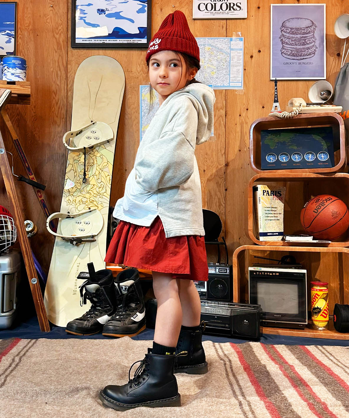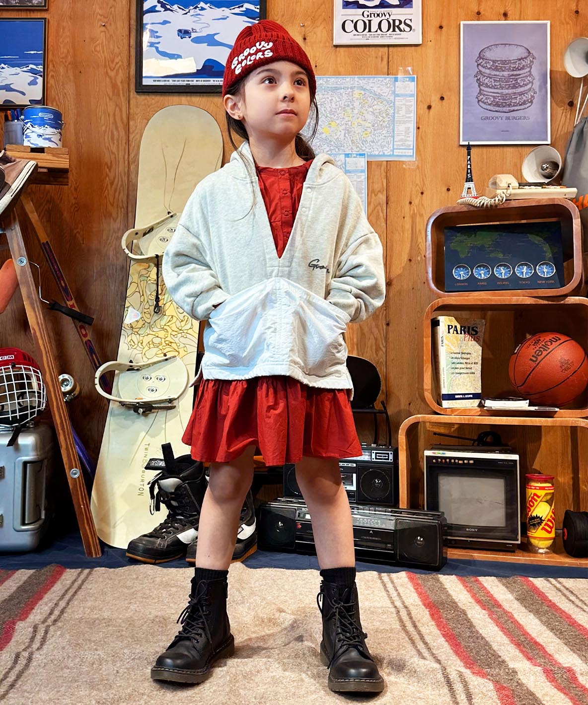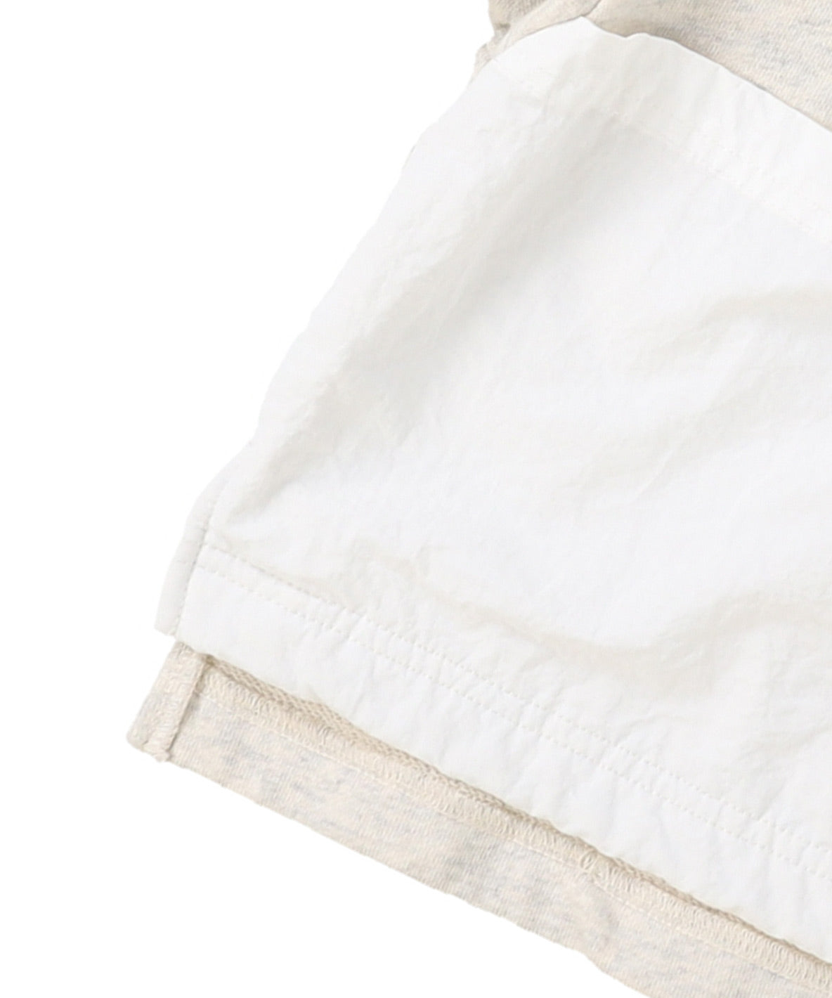 Pile hoodie. Designed with deeply opened neckline. Enjoy your layered outfit. This hoodie can block wind by closing snap buttons on the neck when it is cold. Detailed with nylon pockets. Completed as unique design with matching of different fabrics.