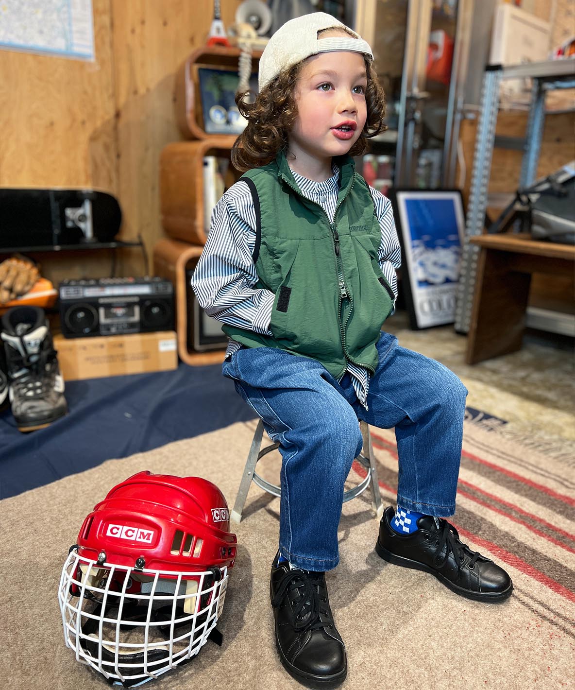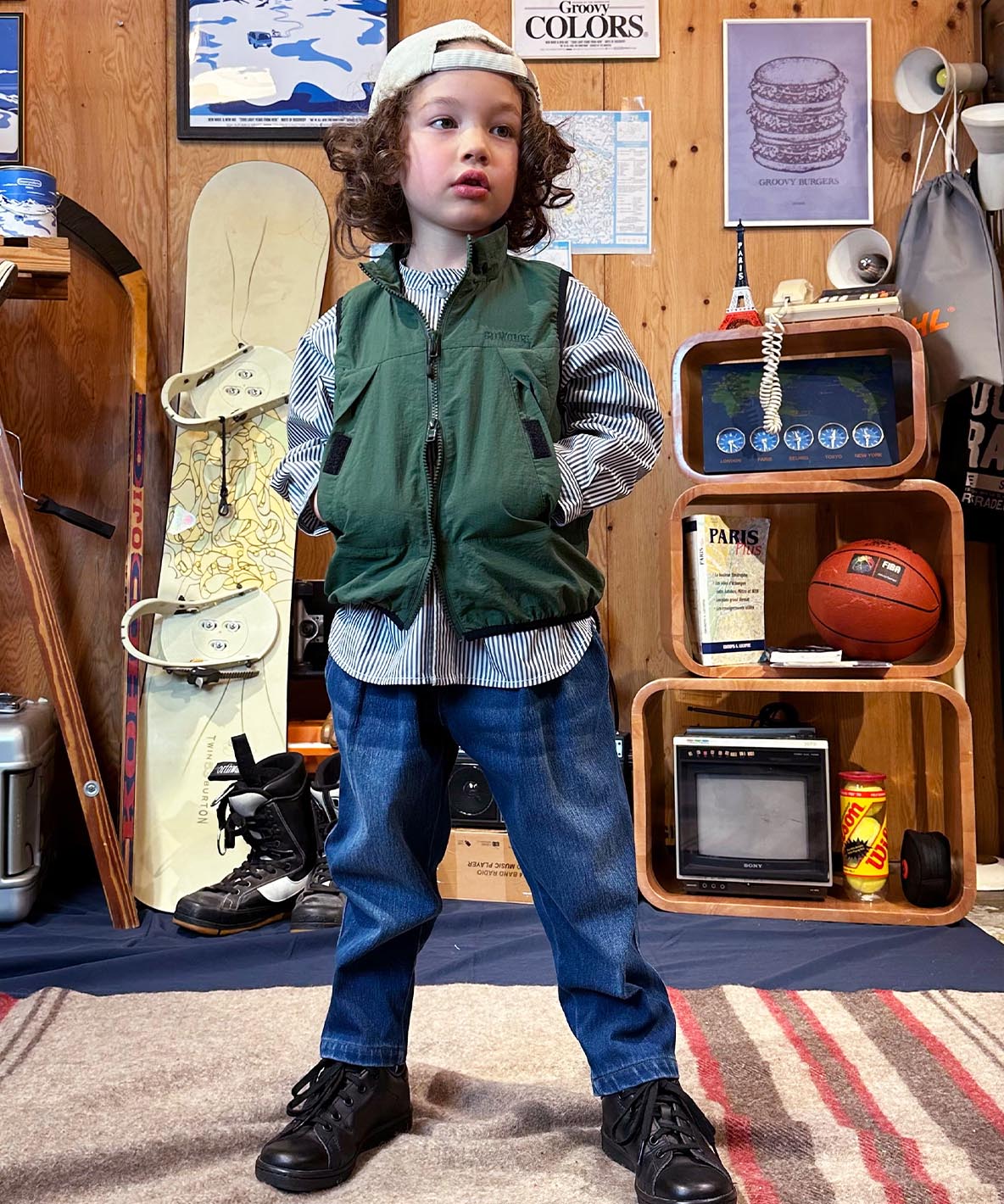 Using knitted denim material. These pants are elasticated and comfortable to wear with double tucks. Clean and tapered silhouette toward hems. They go well with any outfit. Enjoy aging by repeated wearing. Embroidered brand logo with similar color as denim under a pocket on the right back.