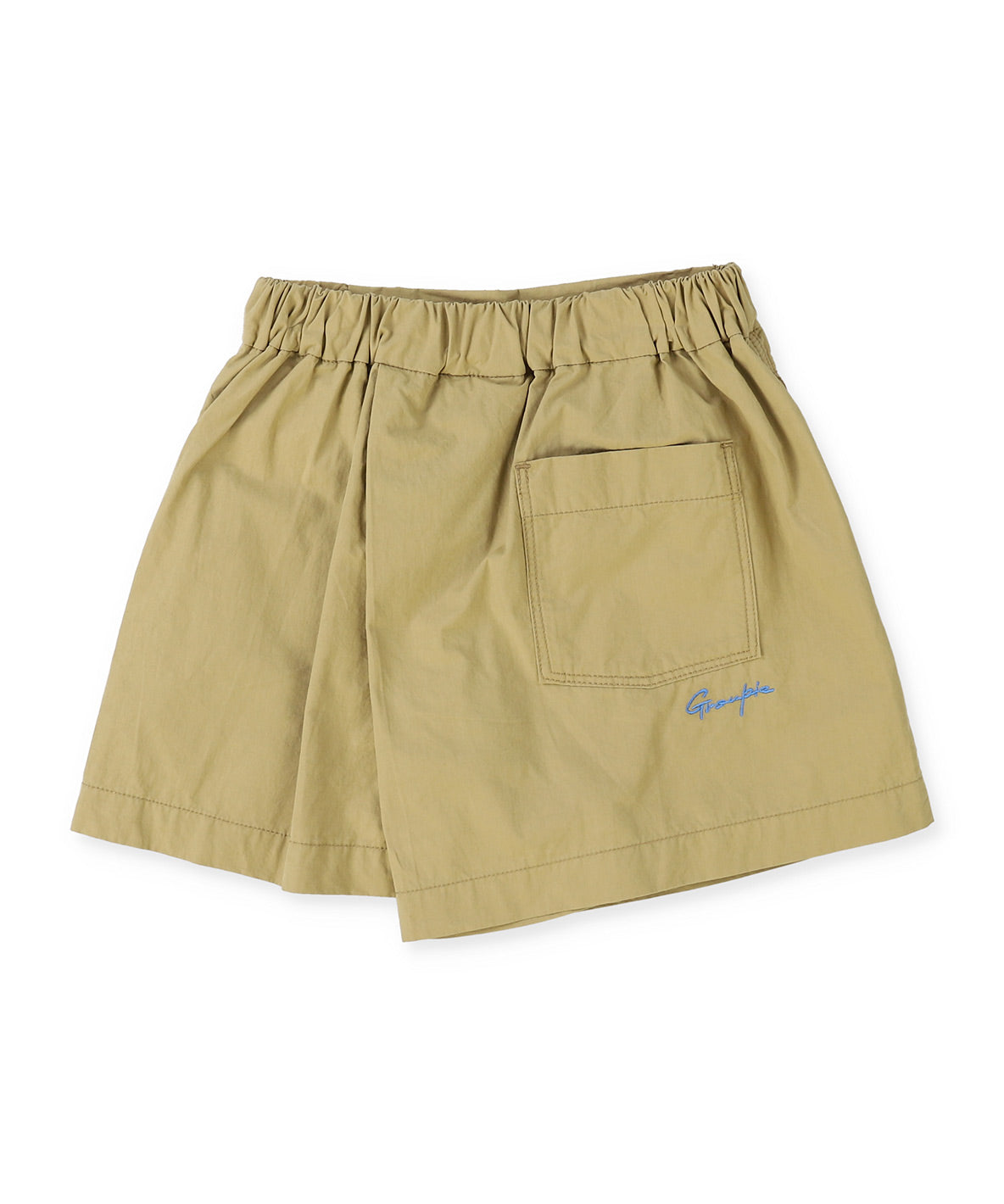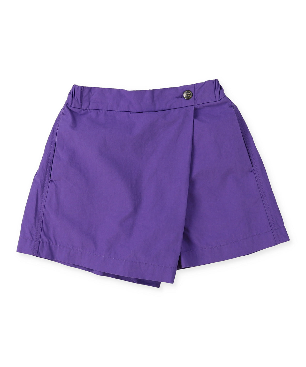 Asymmetry design culottes which look like a wrapped skirt. Using firm cotton fabric. Designed with short length but able to wear them cutely, actively and daily.