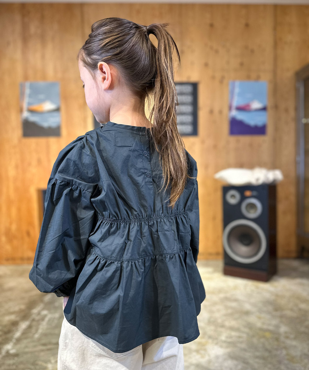 This blouse is completed with semi-wide width and A-line silhouette. It is designed as pullover style and using cotton loan material. This blouse is characterized with plenty of gathers, elasticated shirring and the switching design. Complete a cute outfit only by wearing this blouse. It goes with any outfit with this well-balanced silhouette.
