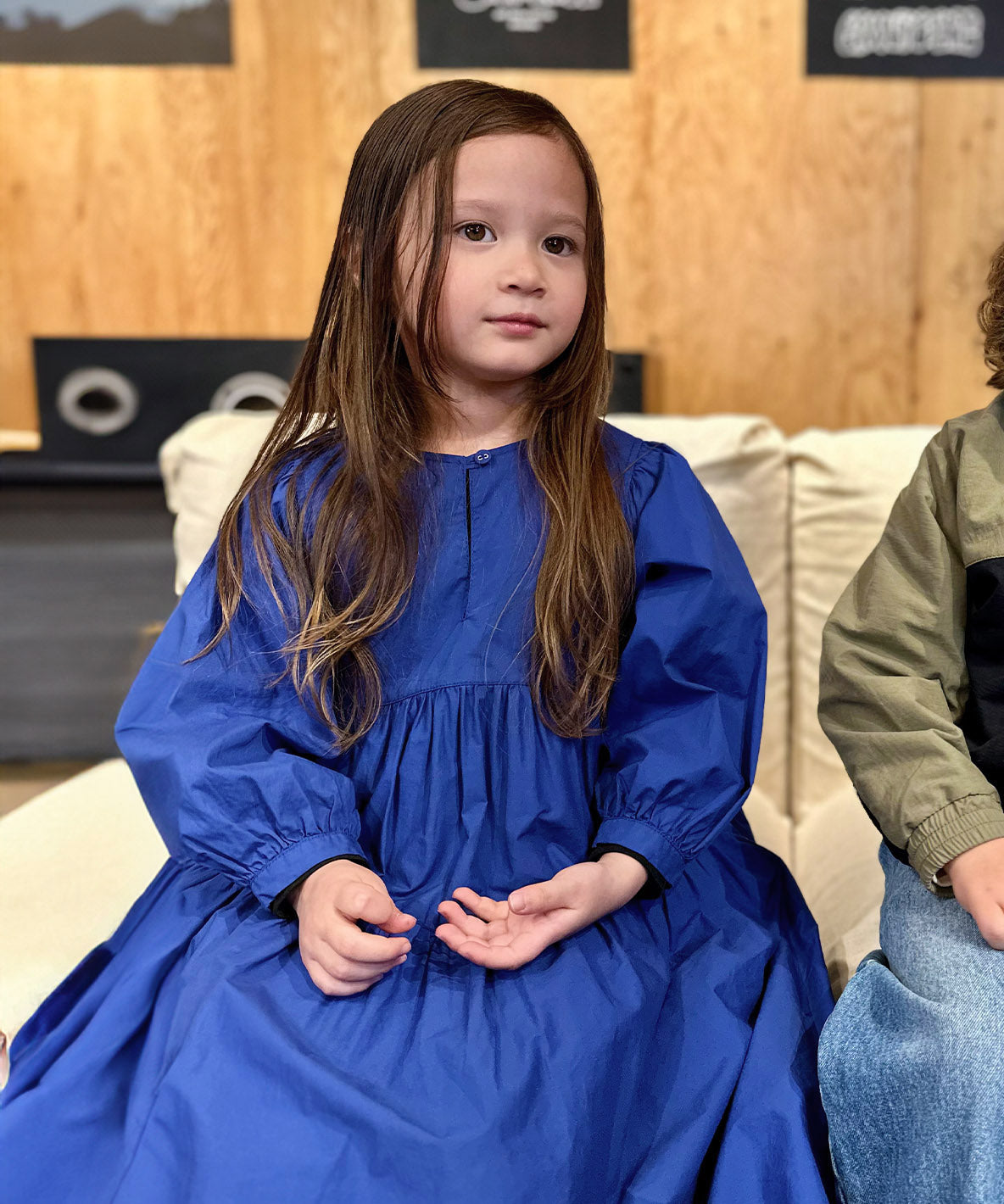 This tiered dress is using cotton loan material. It is designed with long length below the knee. This dress looks cute with airy design sleeves and vivid coloring. This dress complements to a fashionable look with voluminous gathered design by wearing itself.