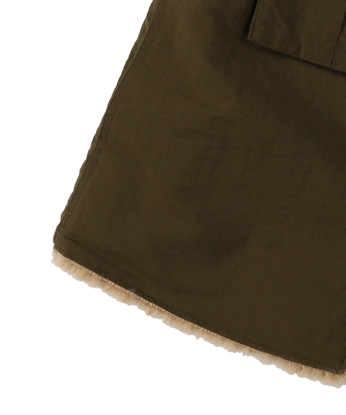 Reversible vest with nylon and fur side. The nylon material is characterized with water-repellent function and spunned touch. It features thin and well-firm texture plus natural look like natural material. The other side is using micro fiber for the fur material. It is characterized with airy and fluffy texture plus authentic touch. This fur material is eco-friendly, light and warm. Designed with the eco fur from Ecopel Co.,Ltd. which is founded by SARFATI. SARFATI is known for producing real fur in France.