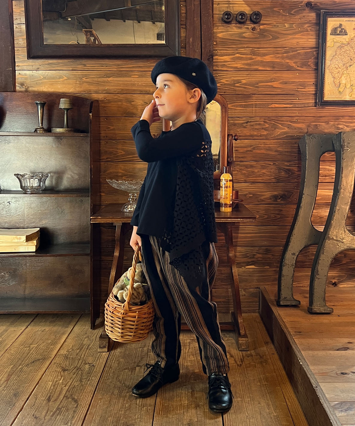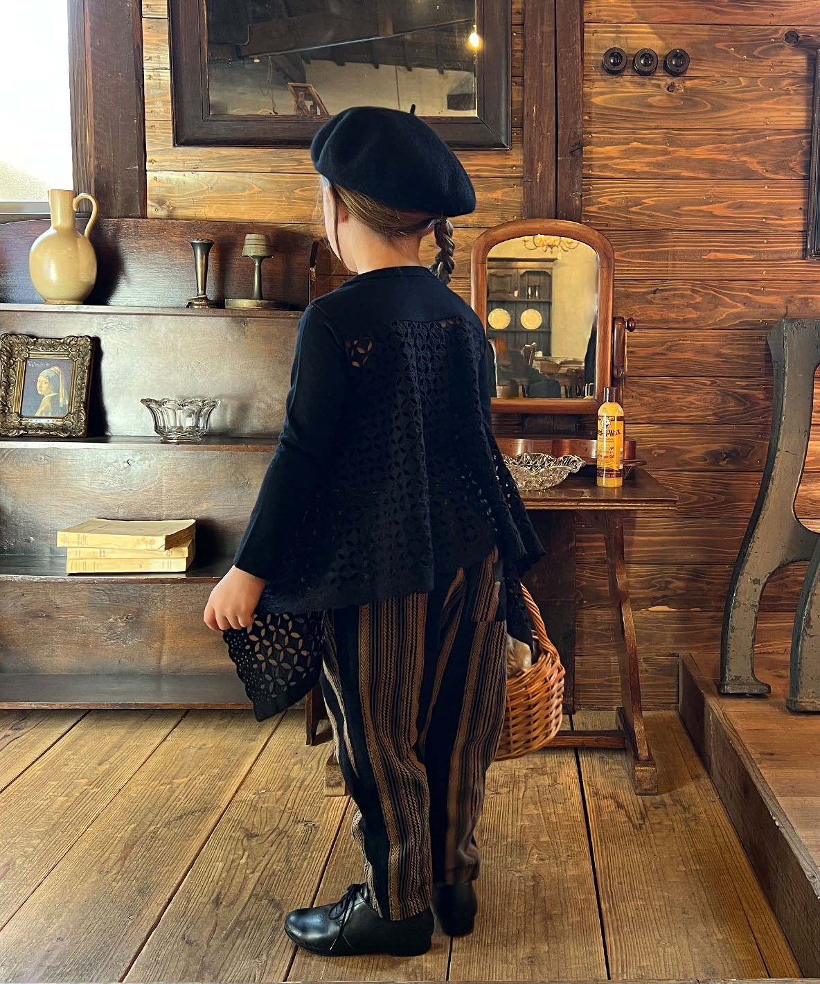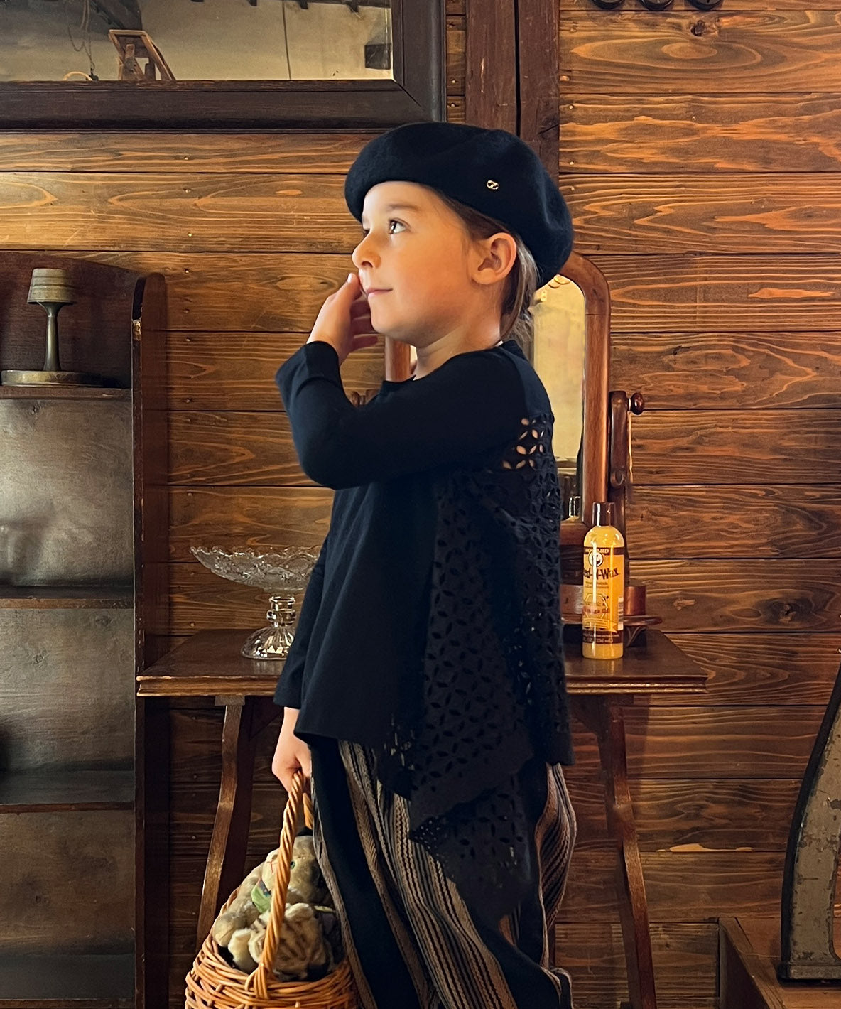 Completed with the cotton jersey woven by 40/2 yarns for the front body and sleeves. This material features well-voluminous, soft, airy and fluffy texture. Designed with scalloped lace and eyelet embroidery on cotton for the back body. Enjoy this unique texture completed with different materials.