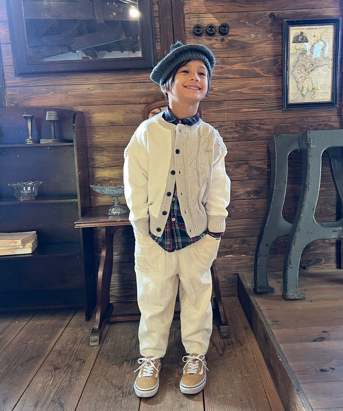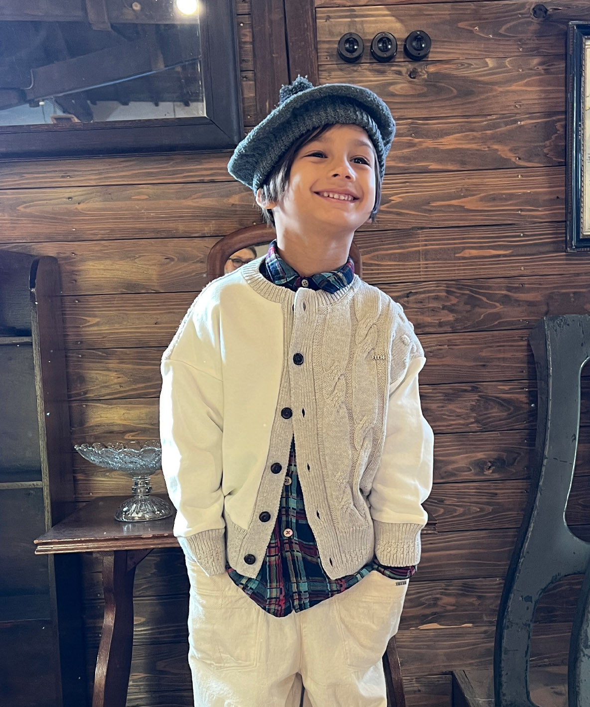 Completed with FITH original material. This crewneck cardigan is characterized with more beautiful and comfortable texture by using the double yarns. Generally, single yarn is used for the back thread, but the secret of this pile is the loop of the back thread loop paralleling two-ply of the single yarn. This material also features tough, smooth and supple texture that is completed by weaving in high density. This cardigan is designed with docking of knit and pile material. It is comfortable to wear with 100% cotton used for both knit and pile fabric. It shows great presence by the combination of rope knitting, dot pattern and rib stitch. Slip on this loose silhouette cardigan casually and daily.
