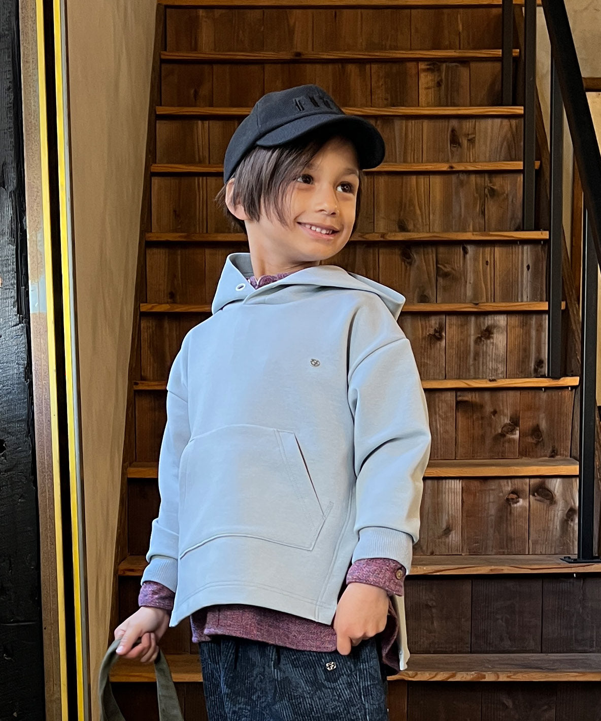 This loose silhouette hoodie is designed with over size. It is using stretchy double knit material blending cotton. This material features airy and voluminous texture. It also has natural texture by blending cotton. Side slits are perfect designs for the layered outfit. Enjoy this beautiful coloring hoodie with the smooth touch.
