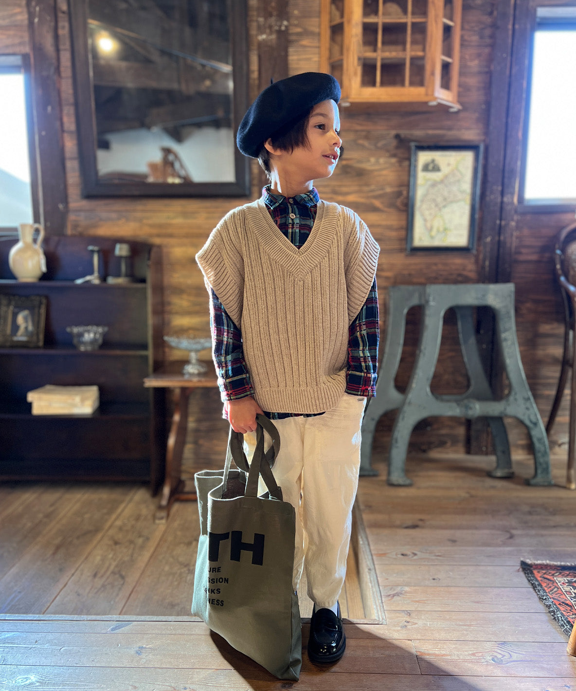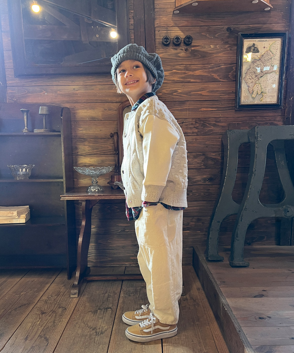 These loose and relaxing silhouette pants are designed with elasticatd waist. They are completed with jacquard fabric using cotton yarns. This material is using indigo yarns for warp and écru for woof. This patchwork design is completed by different weaves. Accented design with big side pockets.