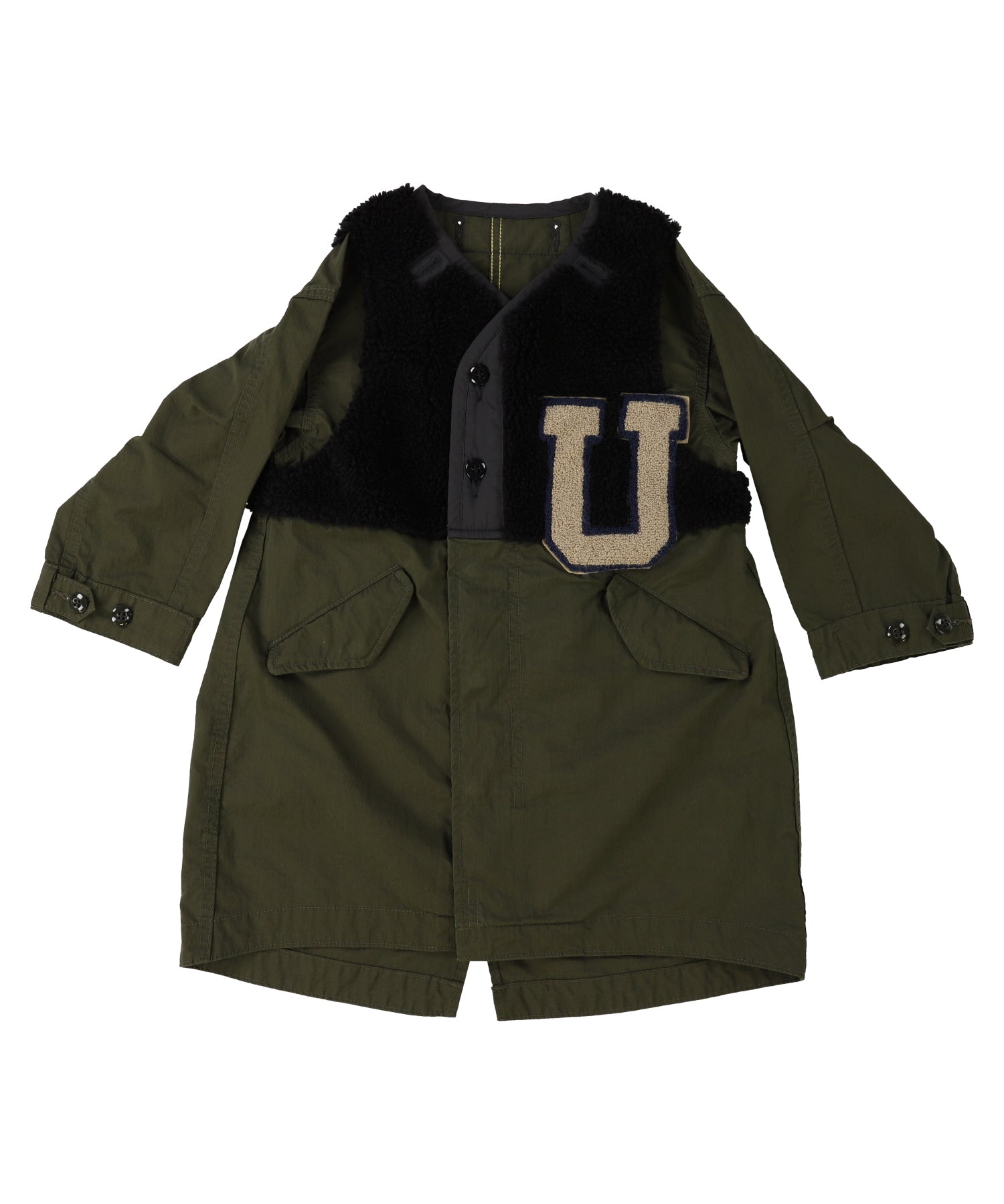 Light and warm jacket. This jacket is designed like remaking a jacket with the docking design of field jackets for the armies and separate linings. It is detailed with a letter patch on the left chest and stencil print on the edge of the back style.