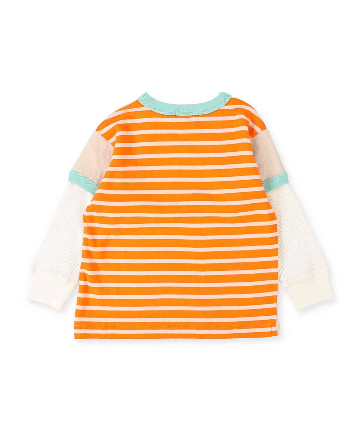 This tee looks like the layered design with the waffle fabric sleeves. It is characterized with the impactful design of a smiling dog at the center.