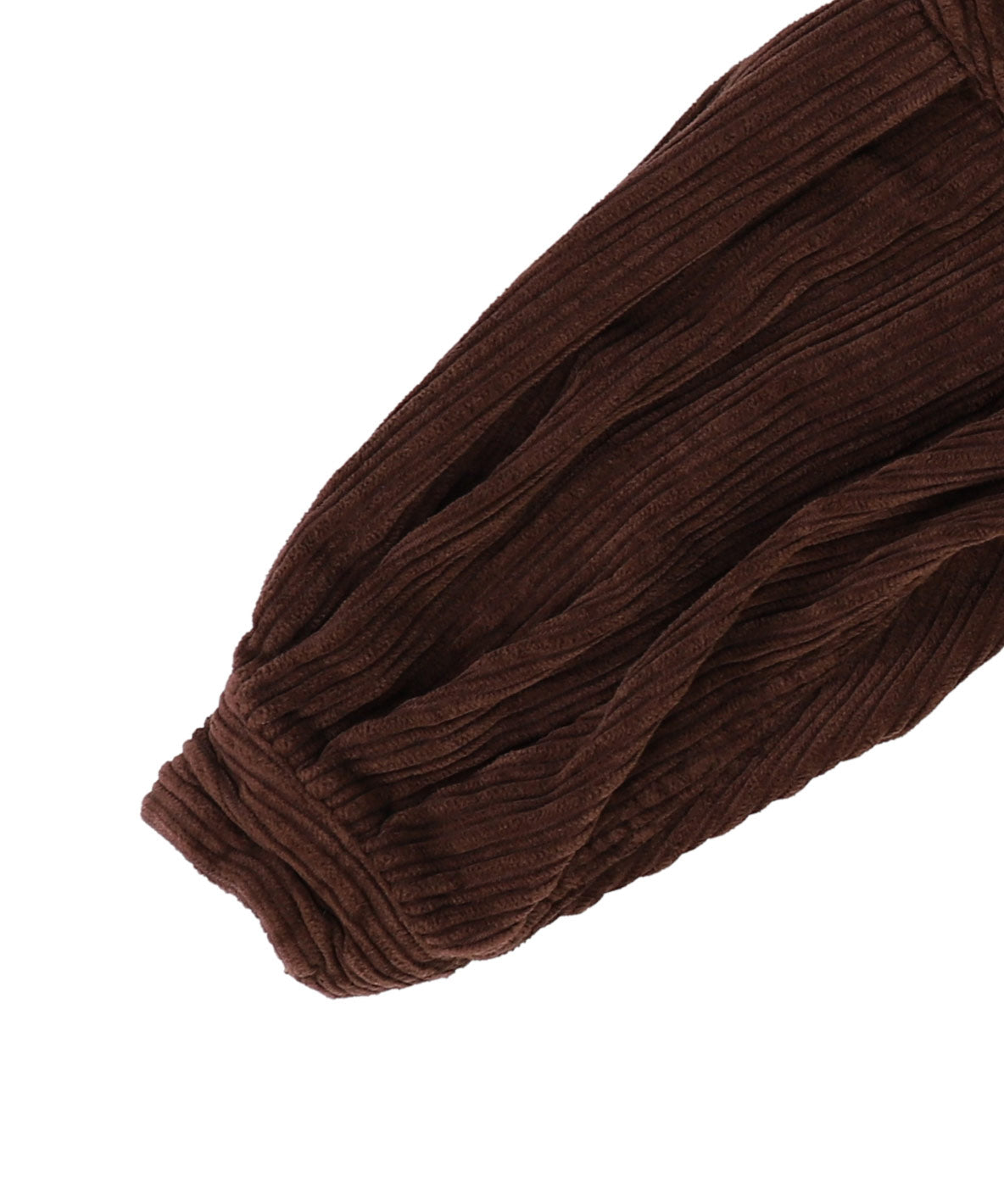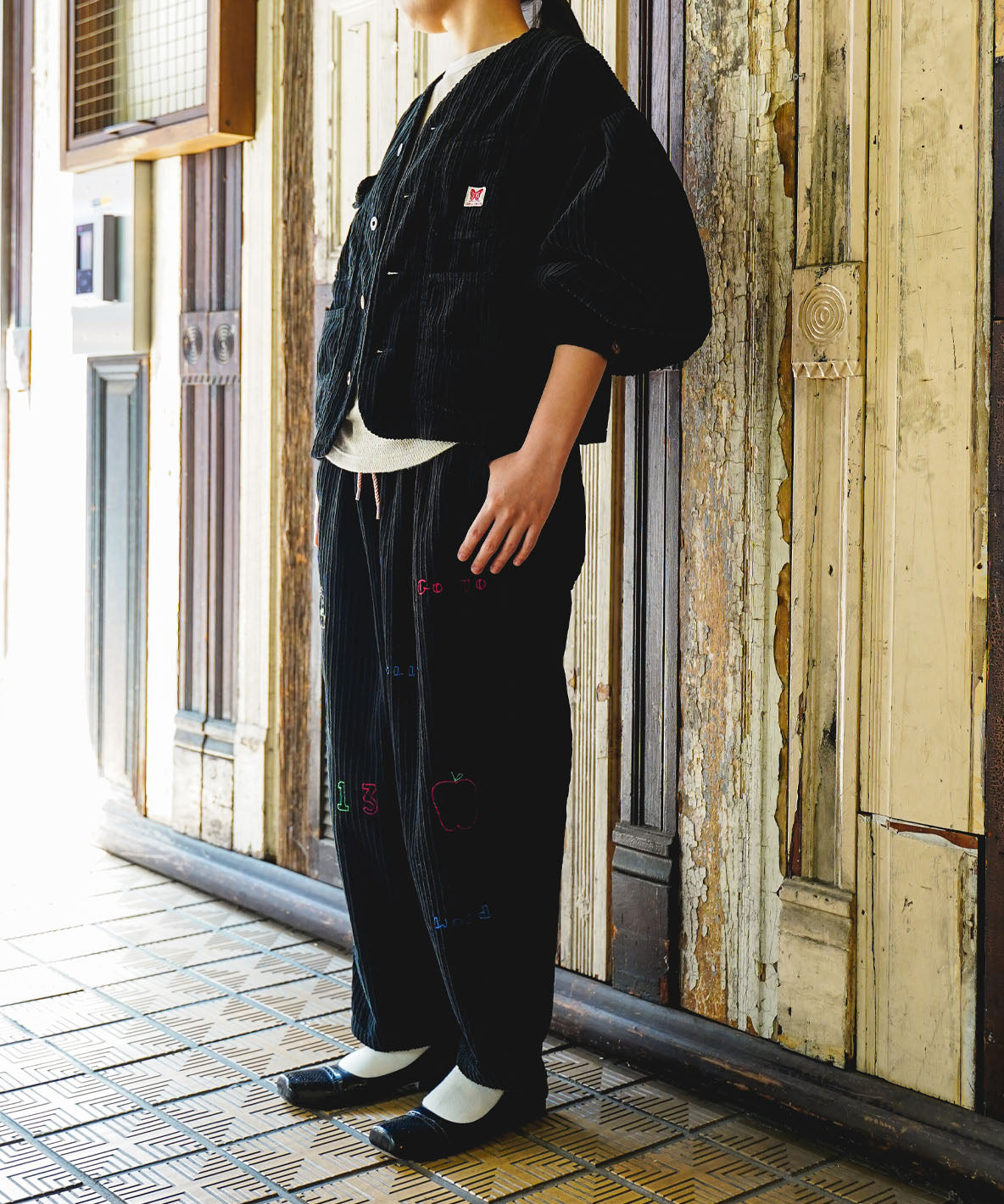 This corduroy coverall jacket is designed with vintage-like details in nostalgic mood. It is using the corduroy material with small and wide ribs. This jacket is completed with well-balanced design featurning voluminous and ballooned sleeves, wide width and short length. It looks more voluminous design sleeves by buttoning cuffs up slimy. These front buttons make this jacket look G2H-ish by using different kinds of the buttons.