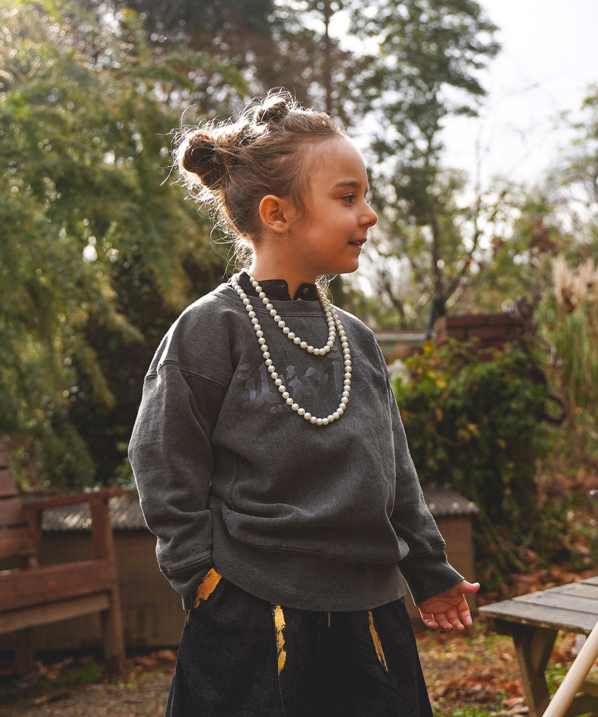 Big letters: شكرًا جزيلاً in Arabic mean THANK YOU VERY MUCH in English. Small letters mean GO TO HOLLYWOOD in Arabic. The letters are printed with soft and tasteful coloring even with black color that tends to give you a strong impression. They are completed by dyeing over grandrelle gray. Recommended for mens with simple logo design printed with the similar coloring to the base color. Enjoy its aging complemented by a special method.