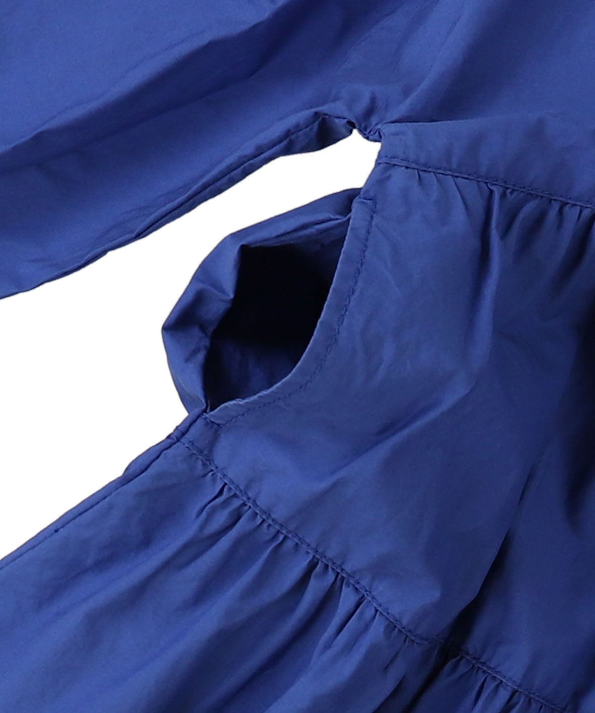 This tiered dress is using cotton loan material. It is designed with long length below the knee. This dress looks cute with airy design sleeves and vivid coloring. This dress complements to a fashionable look with voluminous gathered design by wearing itself.