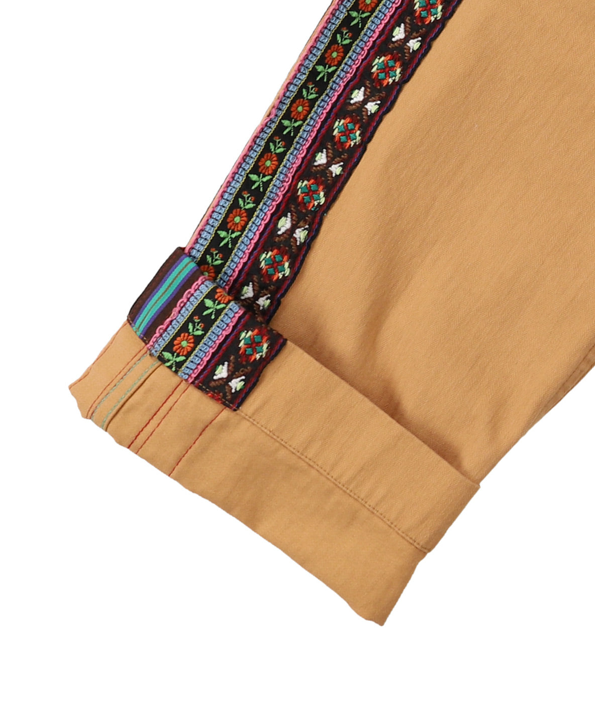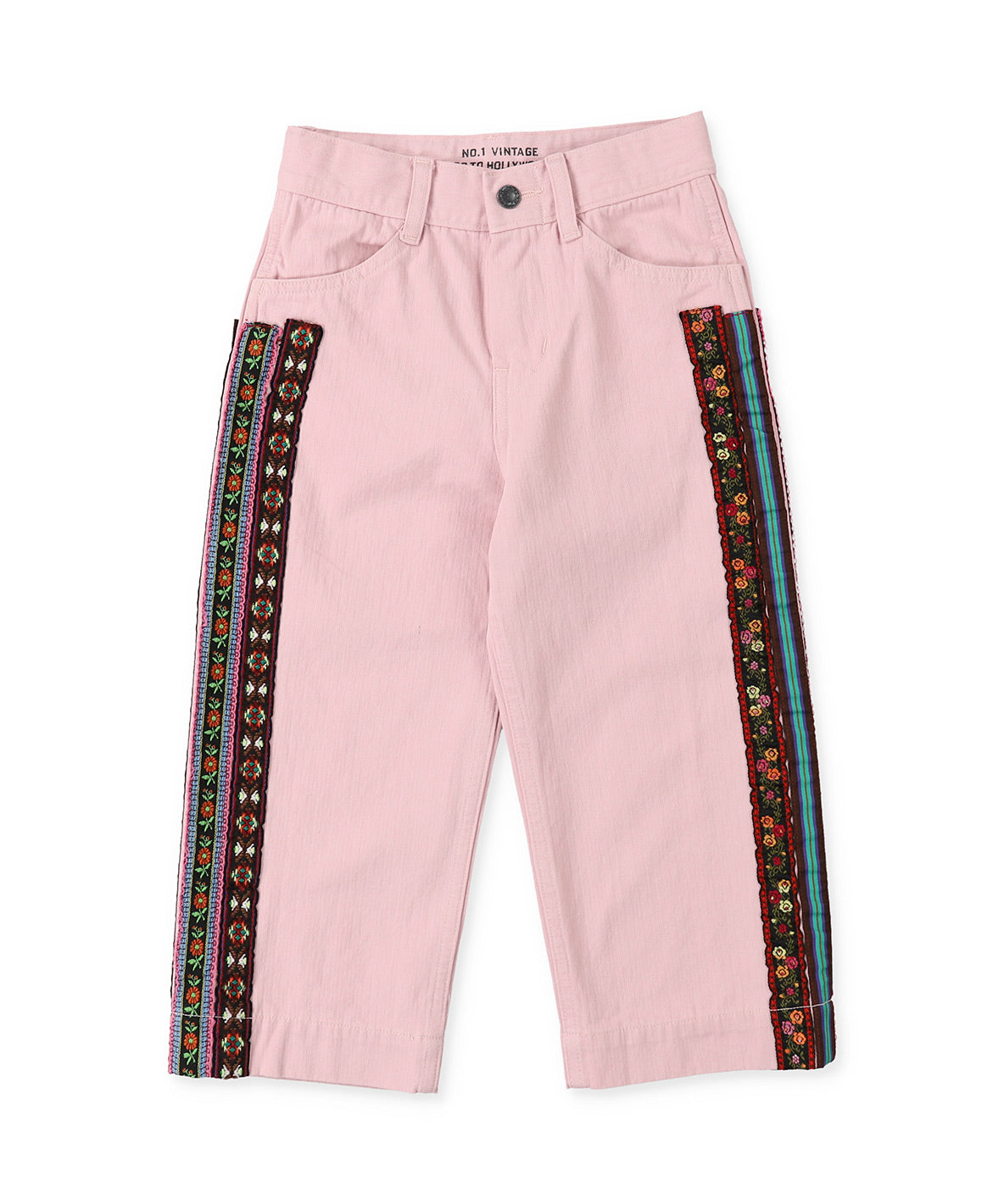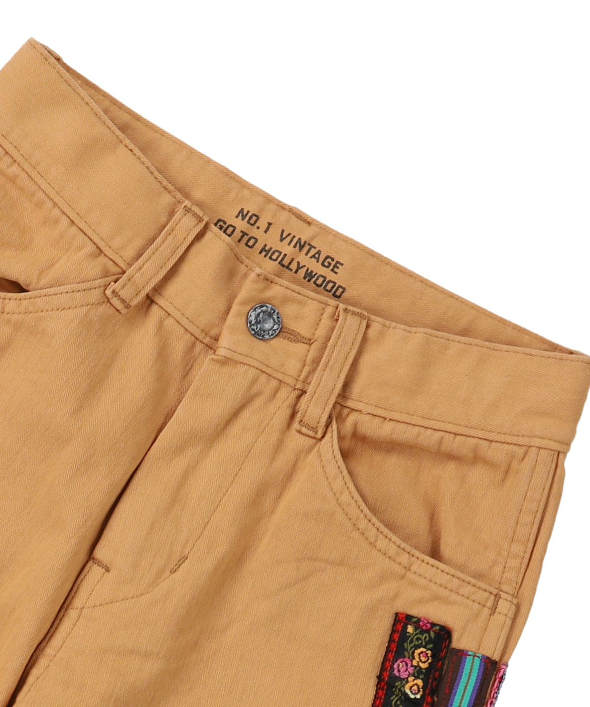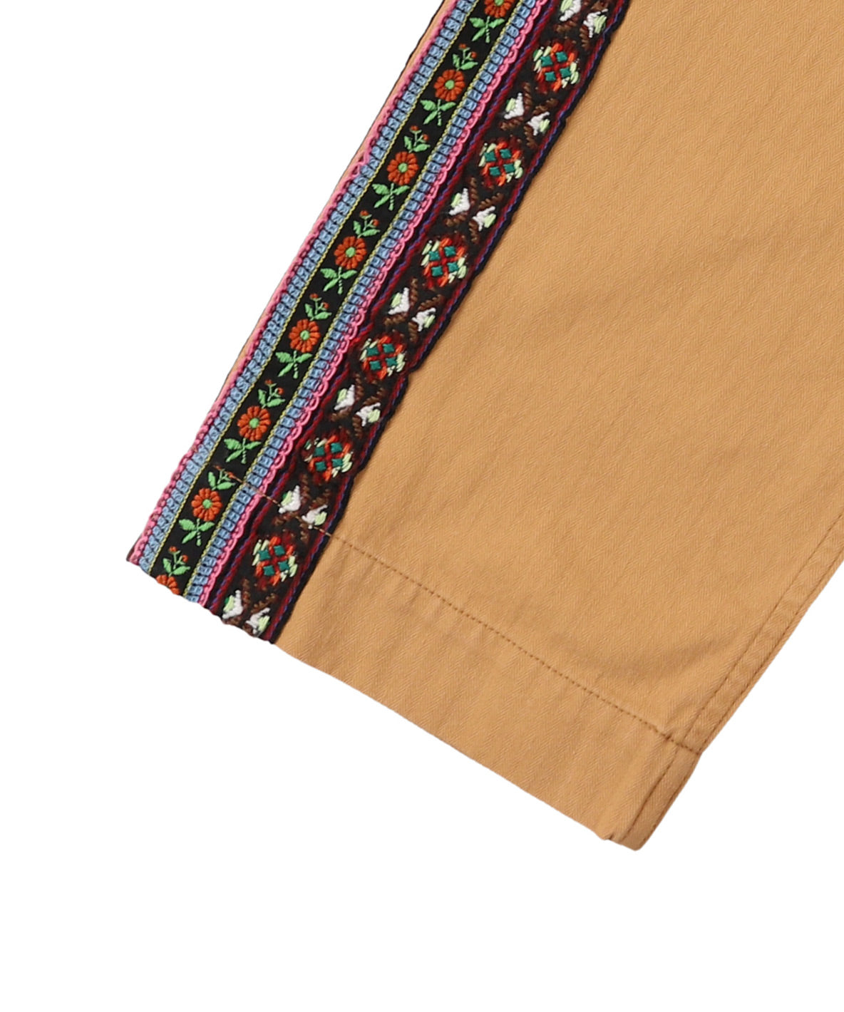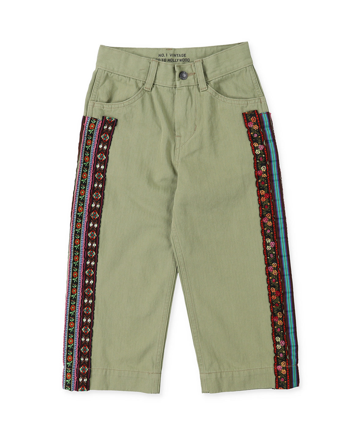 These wide long pants are using herringbone fabric with firm twill weave. It is arranging details of US NAVY N-3 trousers in the 40-50s. They are detailed with different pattern tyrolean tapes on sides. They may look slim by bold side lines and the beautiful silhouette with dropping vertically. It goes well with any clothes by designed in basic size. It is comfortable and loose to wear with clean-shaped hip line. Top-and-bottom set outfit with the jacket ref no. 1242202.