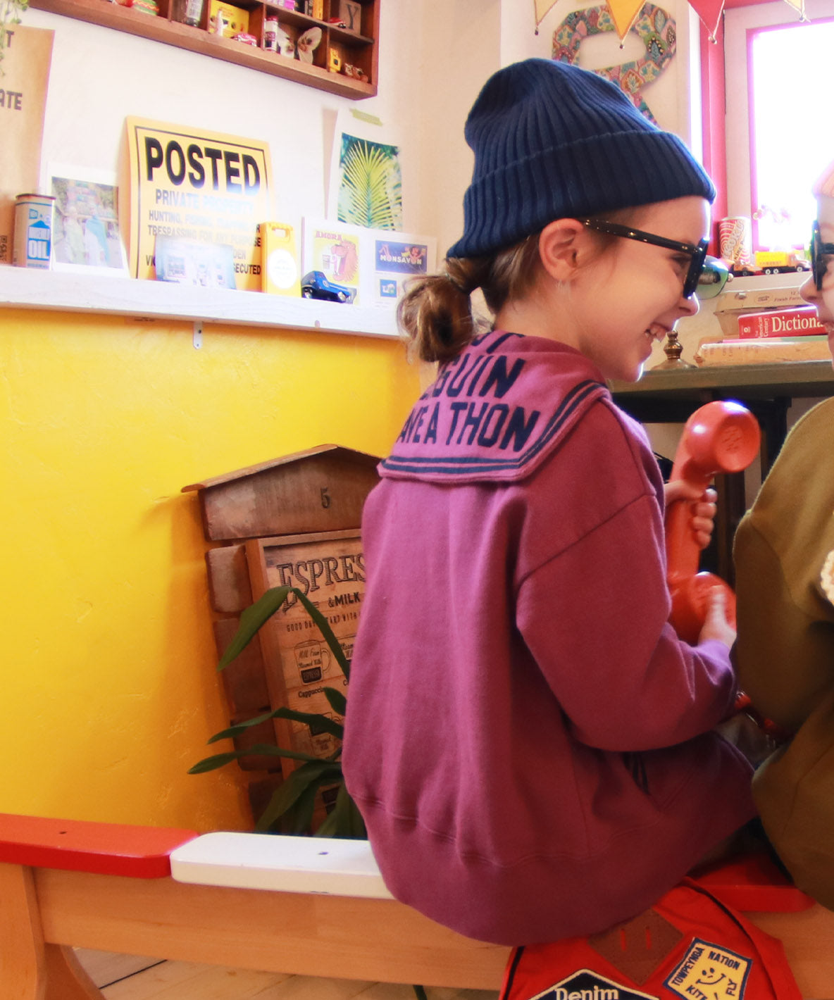 This sailor jacket is designed with the same silhouette as ref. # 22520425 in SS25. PENNIE is embroidered on the left chest. Flocky printing is designed on the back side of the sailor collar. Enjoy this jacket in different outfit with the double slider zippers.