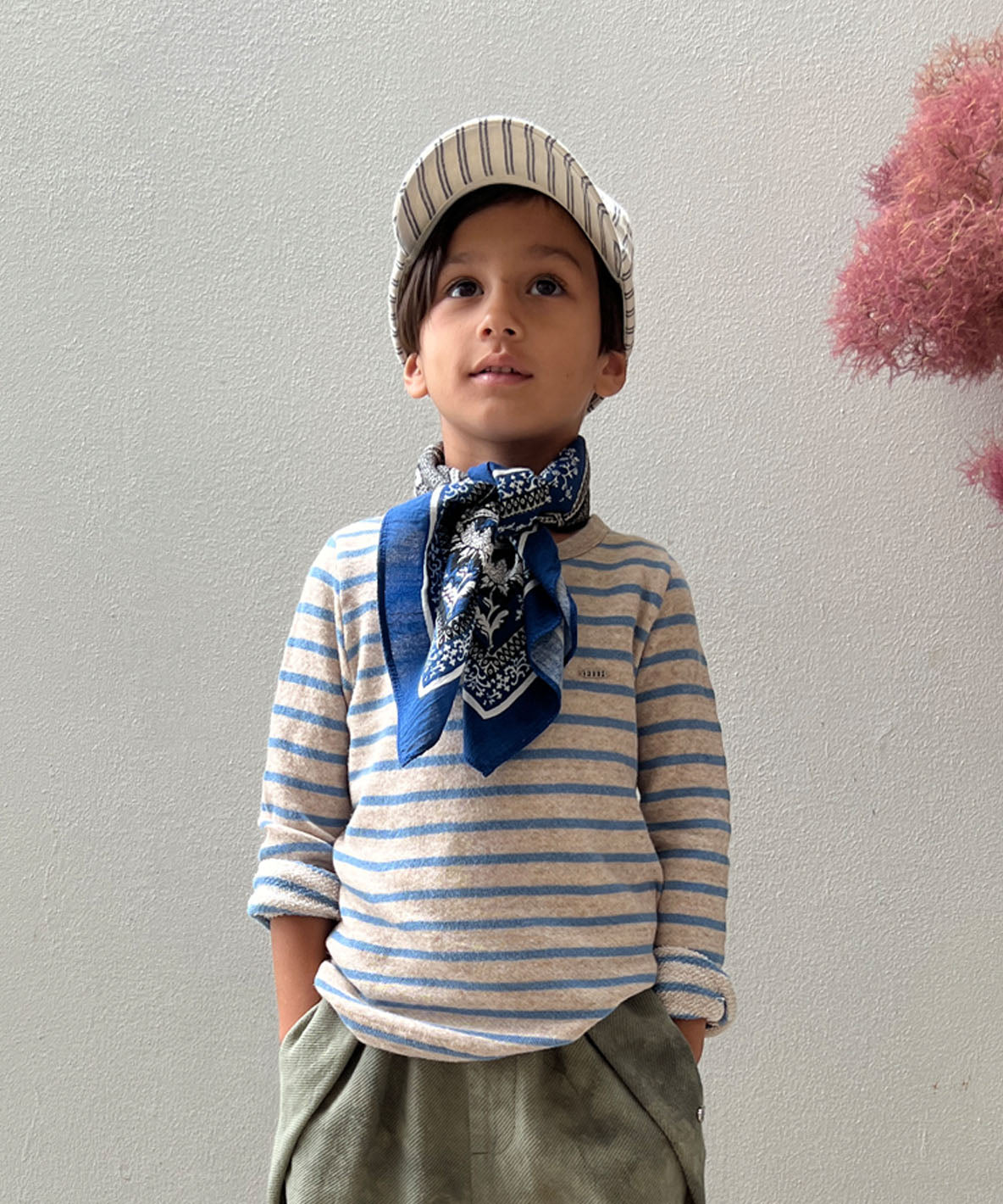 Simple L/S T-shirt in compact size. FITH original fabric. Made in Wakayama, Japan. Using mini pile fabric. This striped fabric is woven with cotton and linen + yarn dyed cotton as outer thread. Using 100% cotton for back thread which touches your skin directly. Completed as very light and comfortable texture like gauze by weaving gauge roughly. Features refreshing material with smooth touch of cotton and linen. You can wear it for all the seasons.