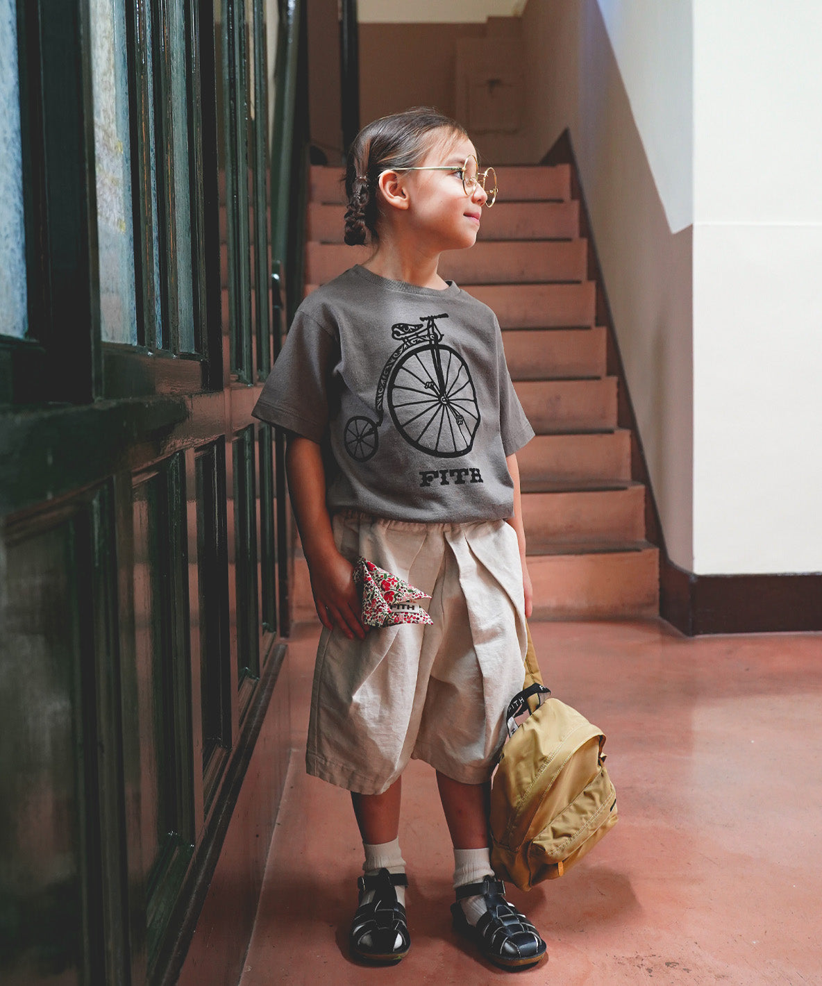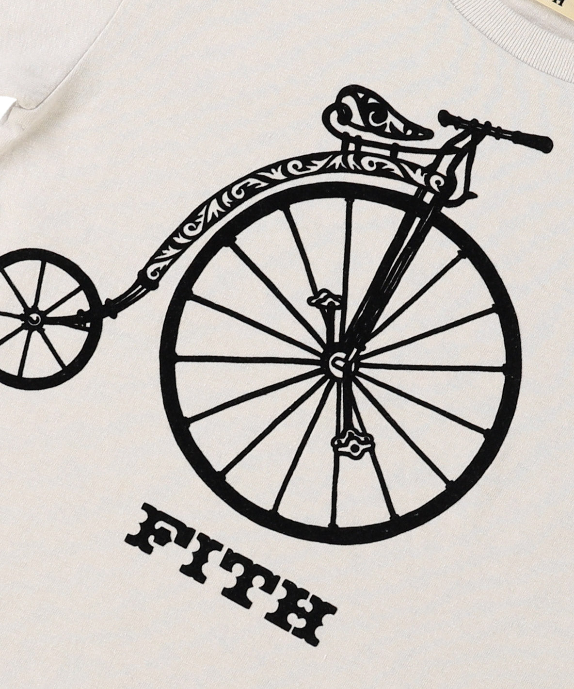 This S/S T-shirt is completed with ECOARCHⓇ known for the environmentally and socially conscious textile. This material is completed with mixed spinning of cotton and hemp. Made in Wakayama, Japan. It is characterized with soft texture of the cotton + naturally nubby texture and smooth touch of hemp. The front style features a vintage-style bicycle in a flocked print. This illustration is created exclusively for FITH.