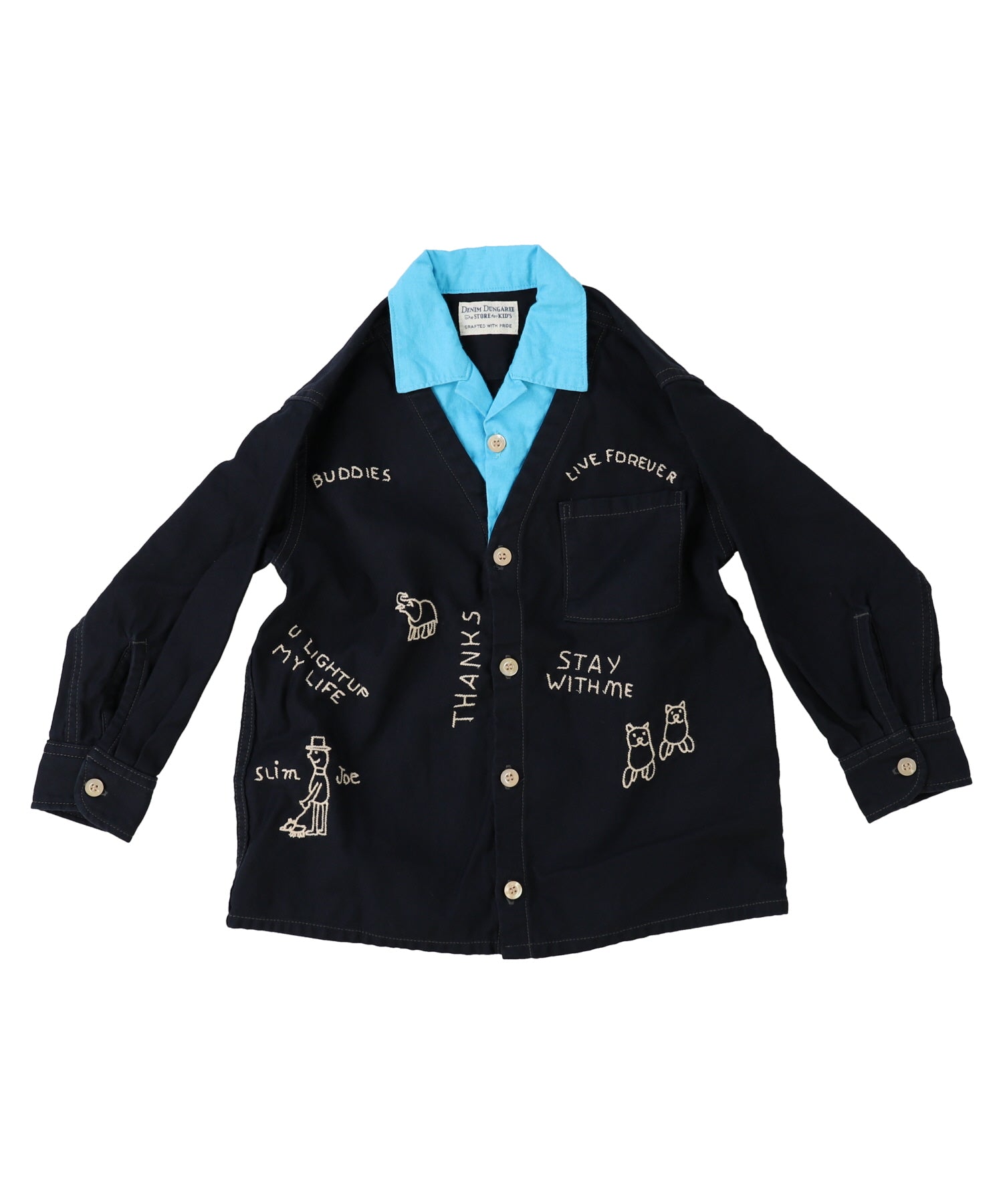 This scribbled shirt is completed with docking design of a vest and an inner shirt. You can complete your outfit only by wearing this shirt. This shirt has a great presence with embroideries on the front.