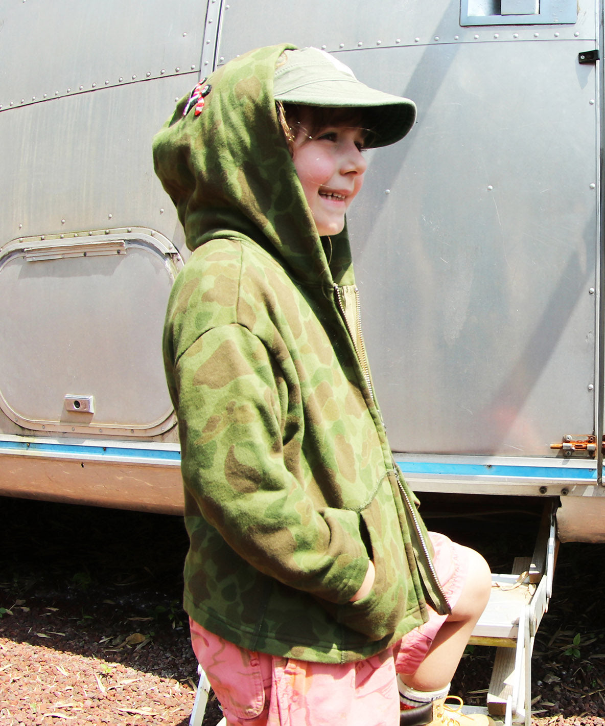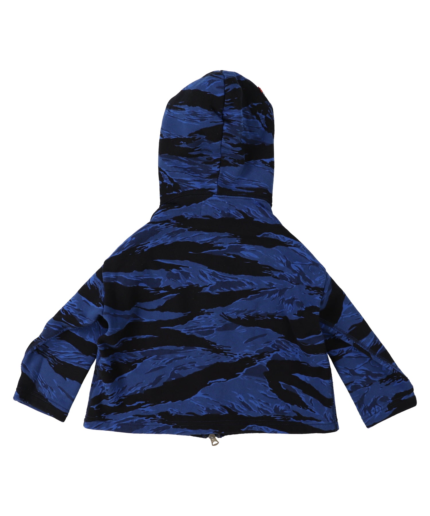 This zip-up hoodie is designed with camouflage pattern. There will be nothing same appearance by dyeing for KHAKI and BLUE. This hoodie looks wild with street-taste design but cute with small penguins placed on the hood.
