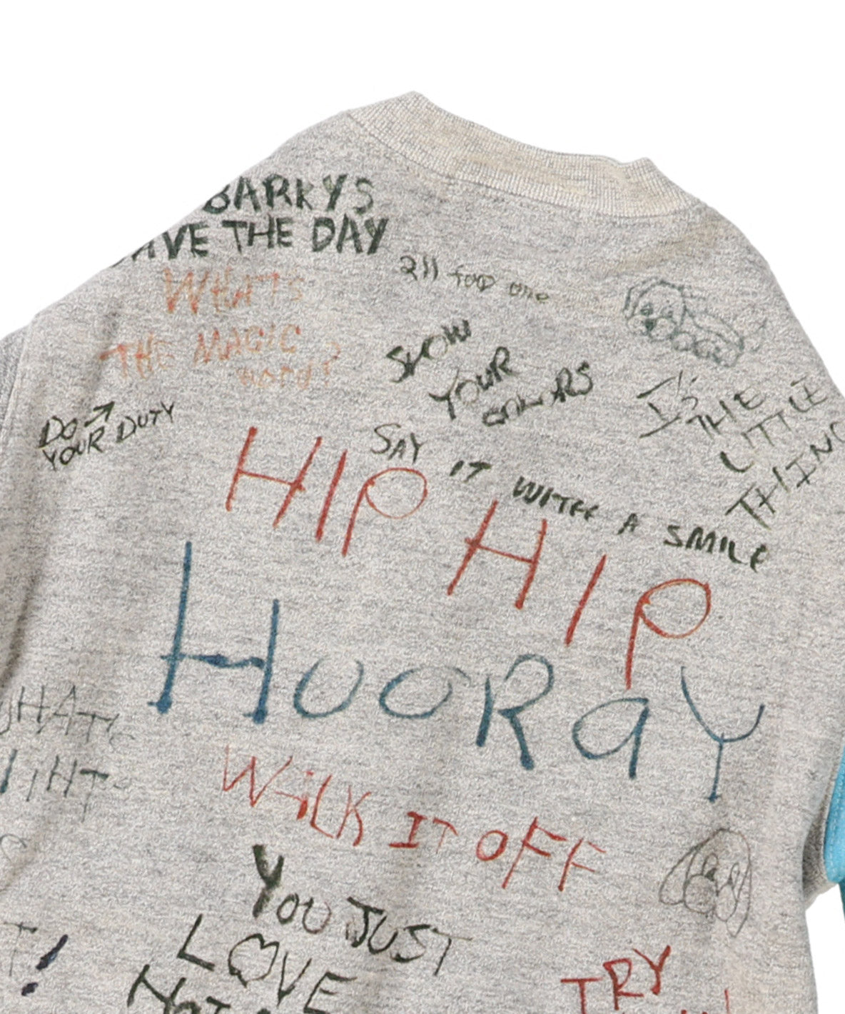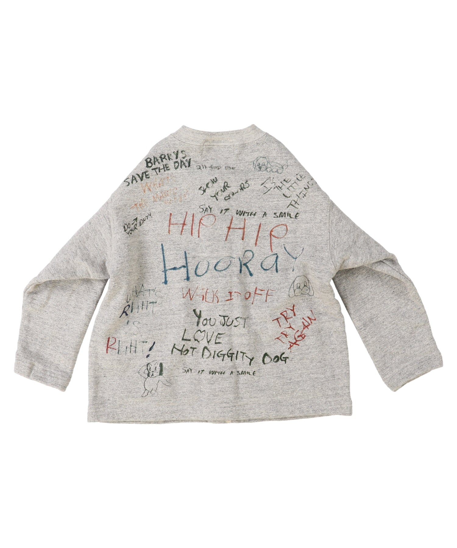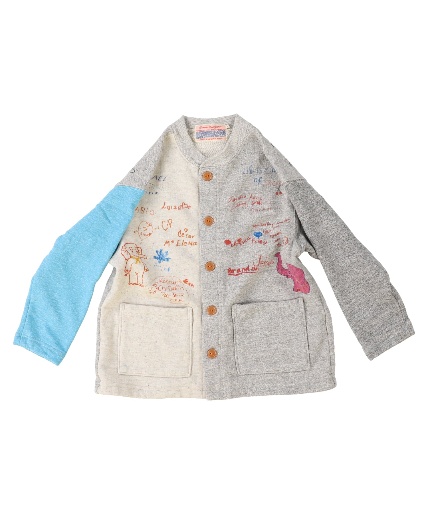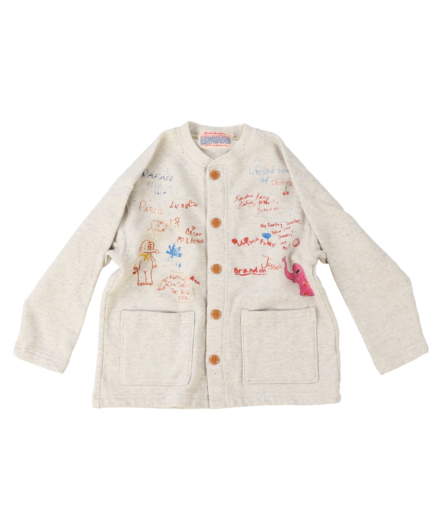 This sweat cardigan is completed by Tompkin weave machine. Tompkin weave machine is weaving from the bottom to the top not like the general circular weave machines weaving from the top. This weave complements to soft texture by containing much air while weaving against gravity and not to burden the thread with its own weight and no unnecessary force is applied to it. This machine is also taking more than ten times of time as the general loop knitting machine. Painstakingly completed material. Scribbled design is completed both for the front and back style.
