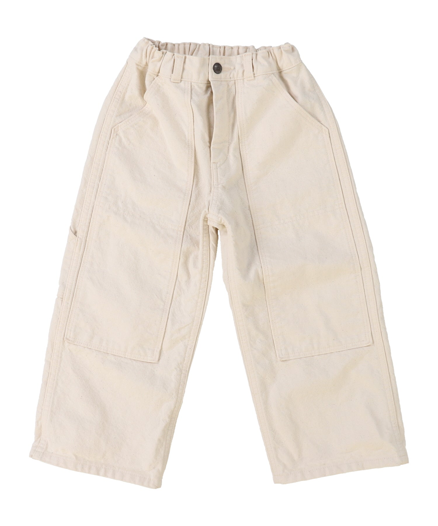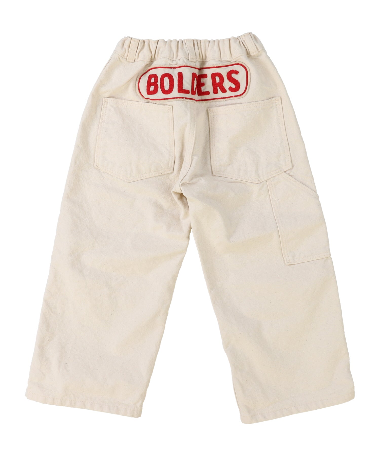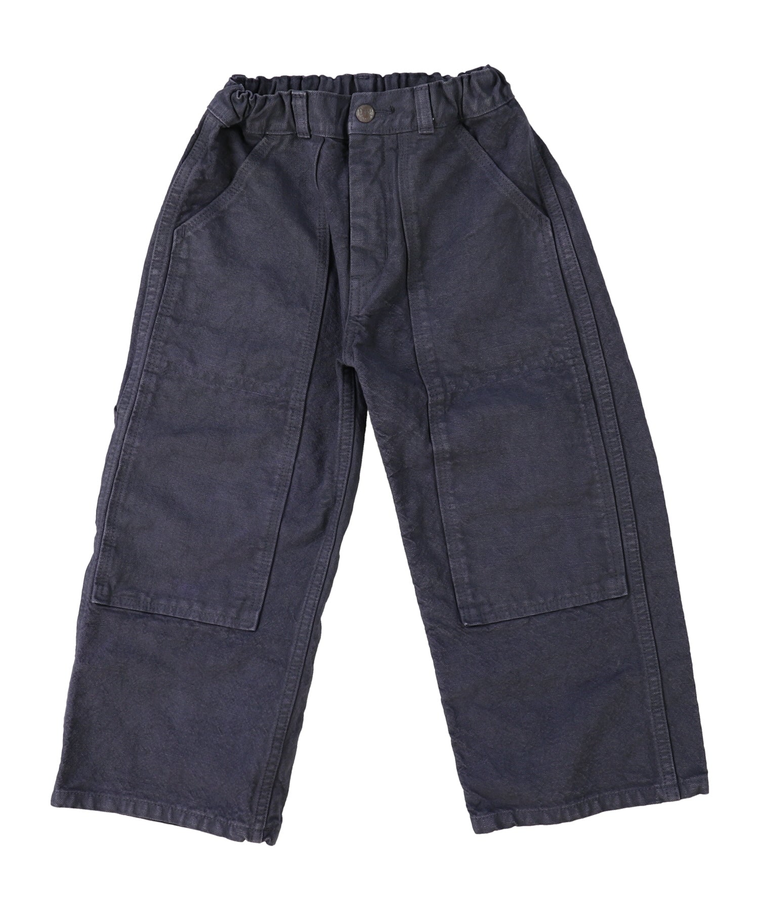 This pair of duck cloth pants is completed with DENIM DUNGAREE's original material featuring unique crinkled texture after washed finish. We strive for softness with looking like oxford fabric. The oxford material is generally made as firm material by using thick yarn for manufacturing. It is also used to being mainly used for bags or work wear in the previous days. "BORDERS" is embroidered on the back style as a message: "Do not give up challenging and keep climbing upward". It looks stylish with the tasteful embroideries.