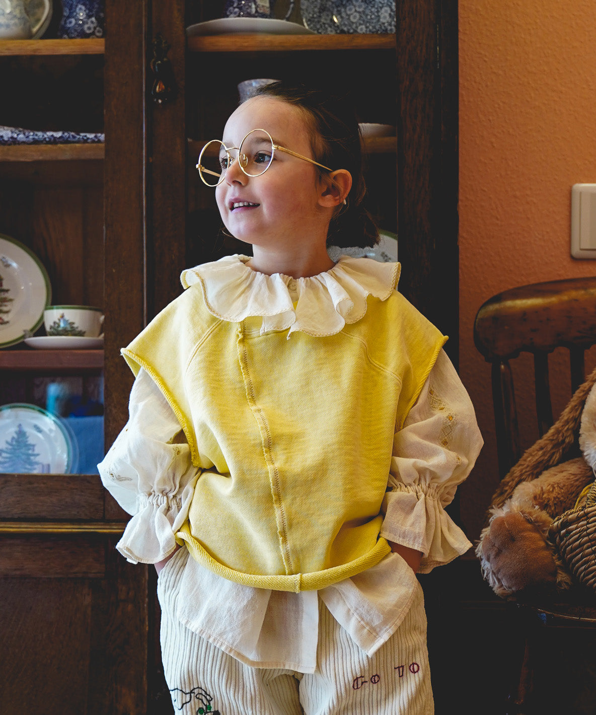 Redesigned vest of the popular vest: ref no. 32480400 from AW24. This vest is mostly designed with the same silhouette as 32480400. It is completed as simple design without any patches.This neckline is completed in well-balanced. Both sides can be worn for the front design.