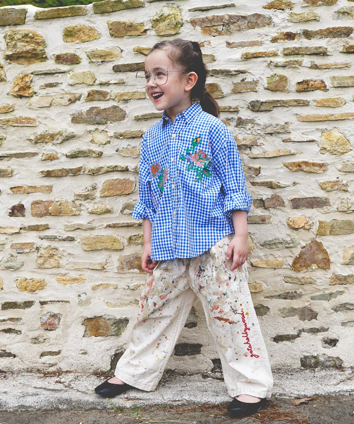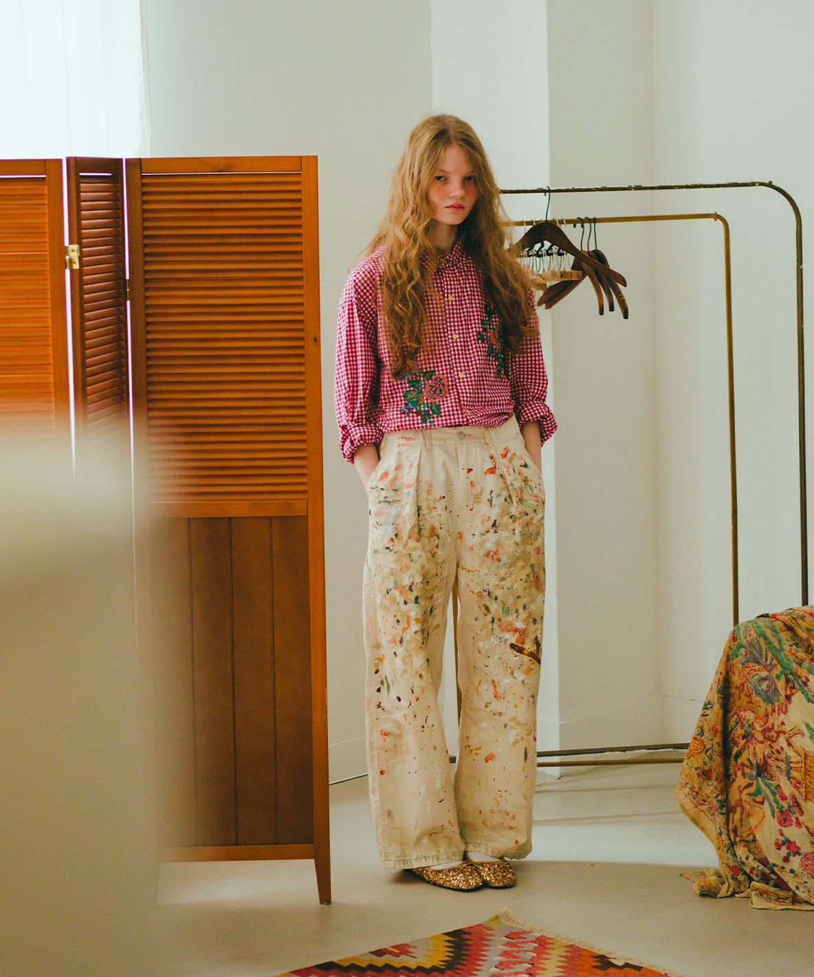 This colorful shirt features cross-stitched flowers blooming on the chest. This shirt will brighten your mood just a little when you see these cross-stitched flowers even at the glance. This shirt is completed with the classic gingham plaid pattern. Enjoy this nostalgic but trendy look. We have size 03 recommended for men, so raise the flowers on your chest. You may think that the floral pattern is a little bit ashamed for men, but this is just right. You will find this shirt in not too pretentious but stylish look.