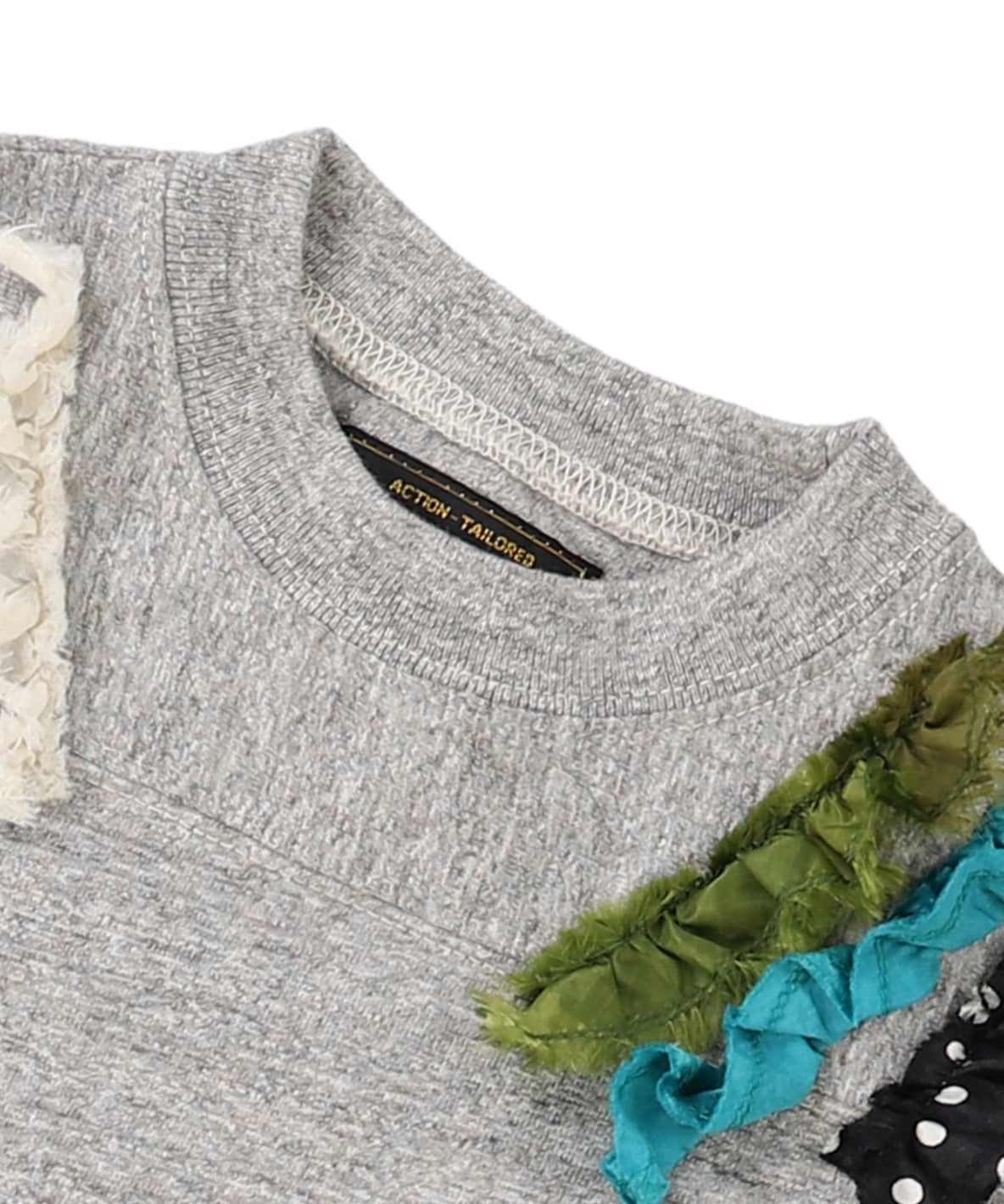 This football T-shirt is designed with plenty of frill. This T-shirt features mixed design with dot tape, camouflage nylon material and folklore ribbons. It looks cute with subtly rebellious design.