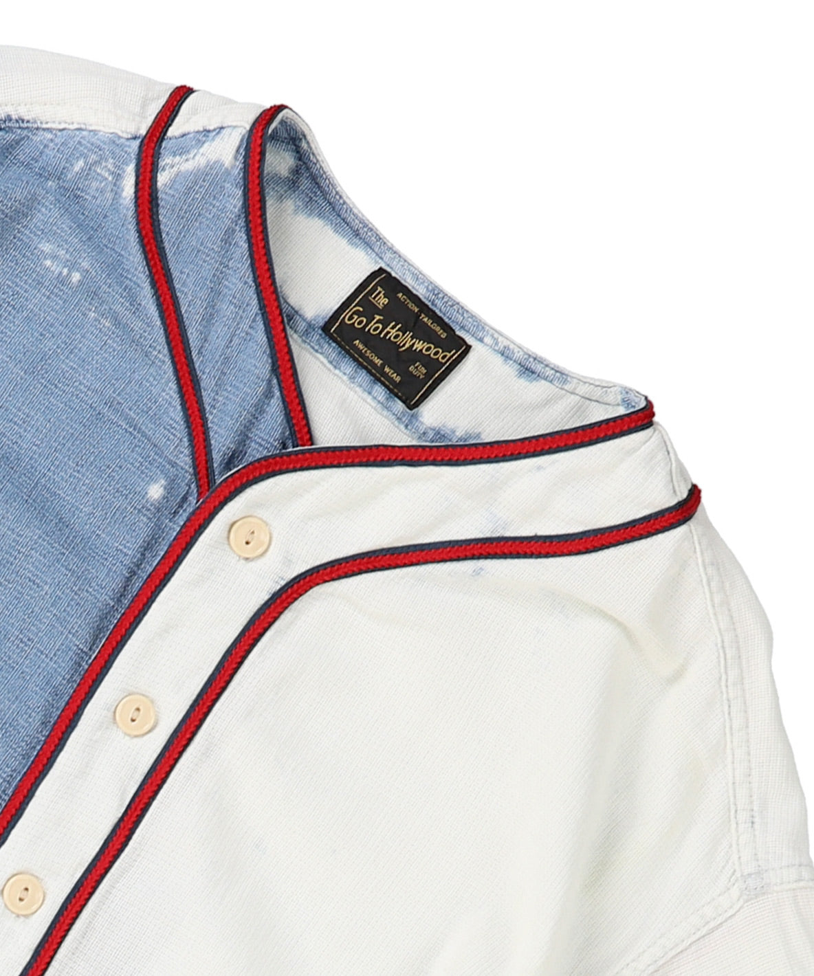 This baseball shirt is using sheer material completed with indigo dye. This shirt is designed with well-balanced look featuring sheerness and deep coloring. It is perfect for the outer wear in hot summer. It is versatile and perfect for wearing against too-cooling-air conditioner or sun light protection.