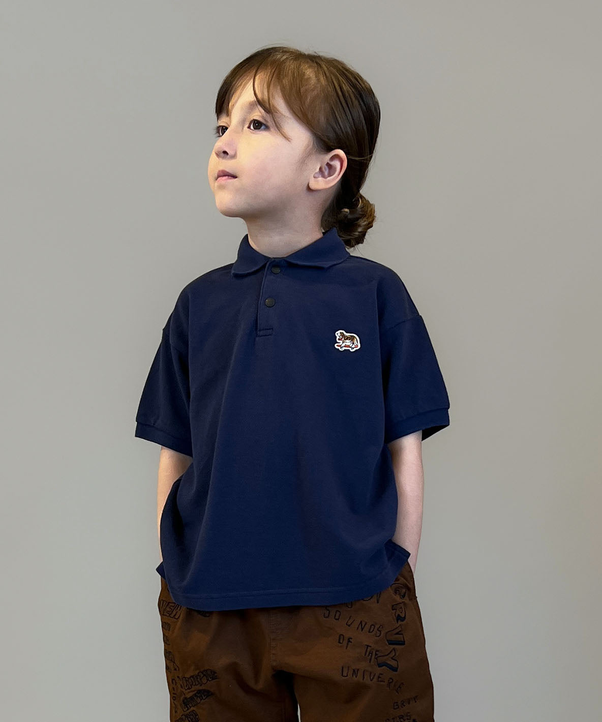 This polo shirt is Completed with 100% cotton pique material. It is designed as semi-loose and boxed silhouette. This polo shirt features an embroidered patch of the skateboarding dog BUDDY attached to the left chest. Enjoy sophisticated look only by wearing this polo.